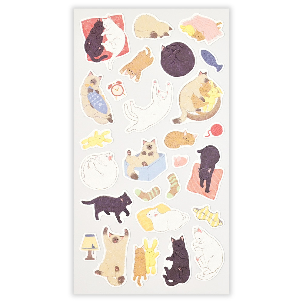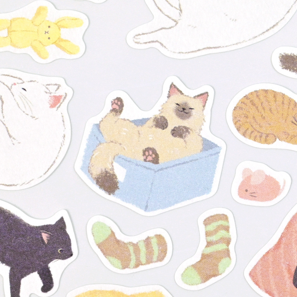 仲良しの猫たちが戯れる姿がかわいいシールです。