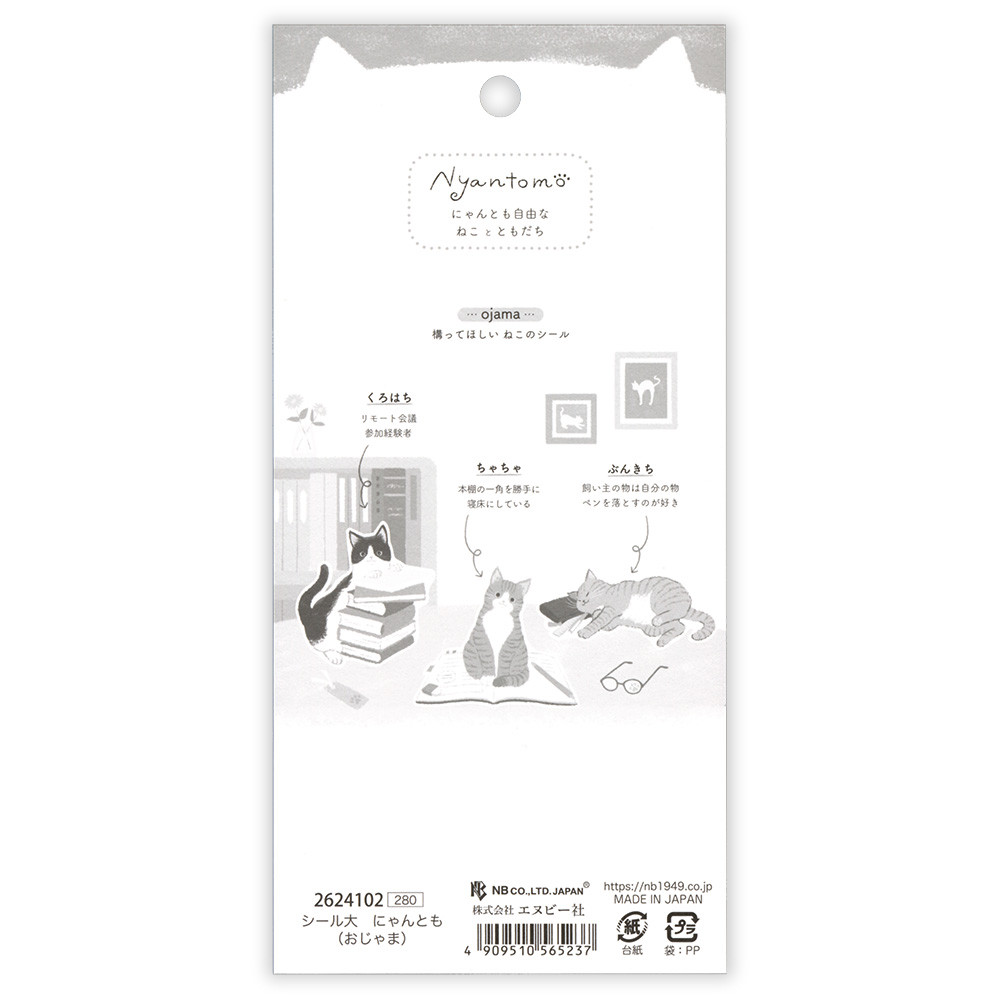 仲良しの猫たちが戯れる姿がわいいシールです。