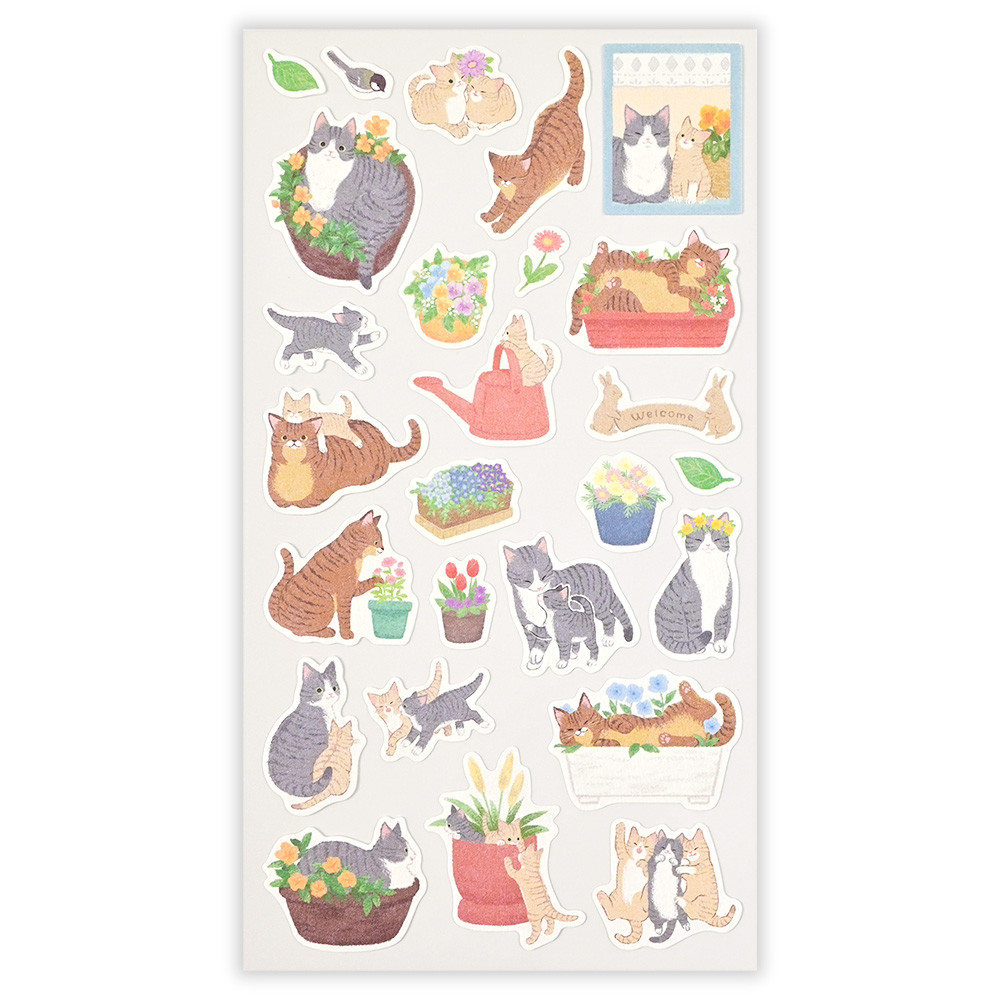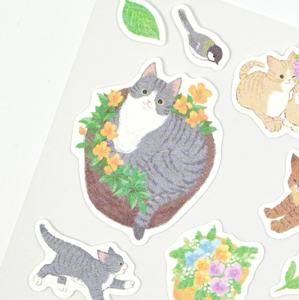 仲良しの猫たちが戯れる姿がかわいいシールです。