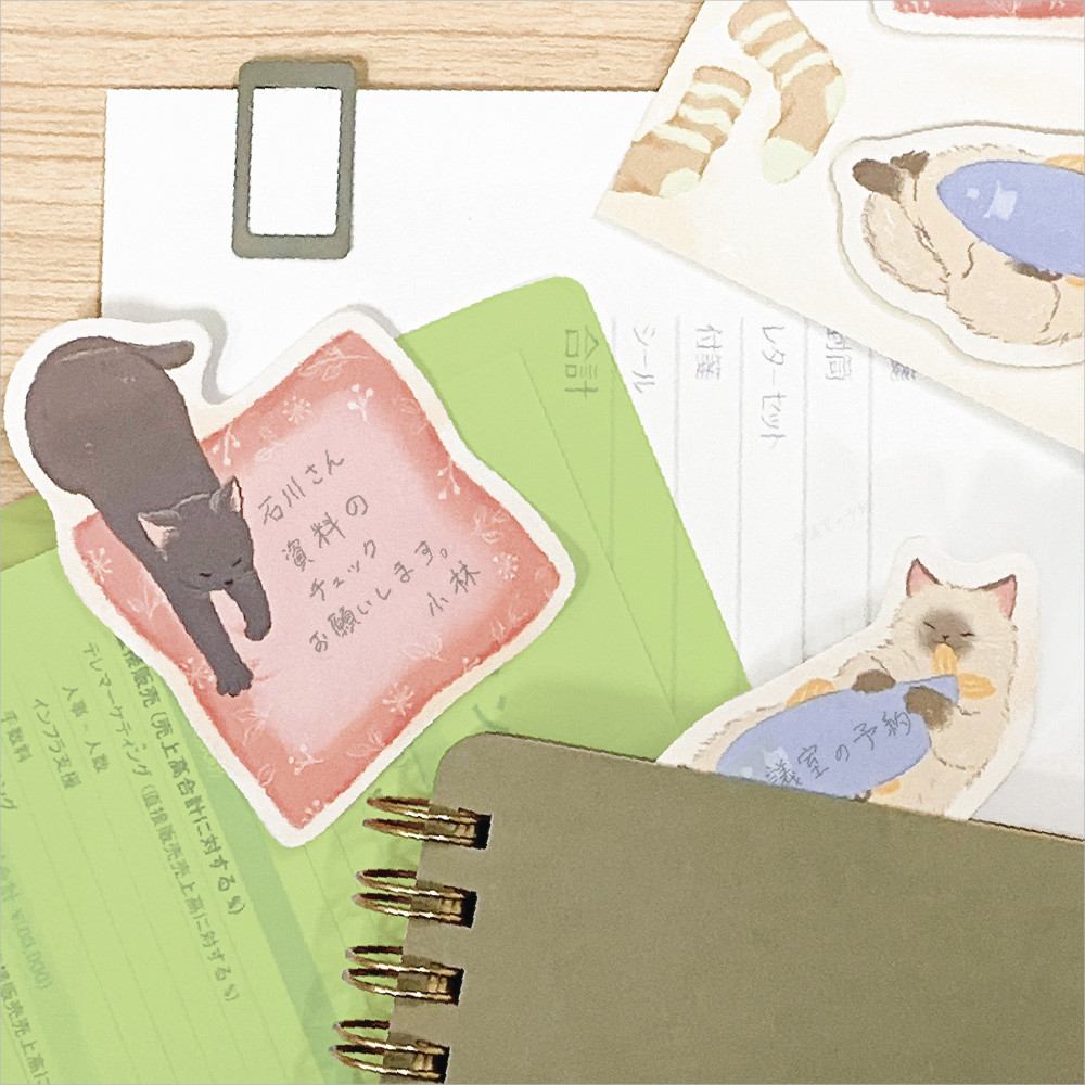 仲良しの猫たちが戯れる姿がかわいいふせんです。
