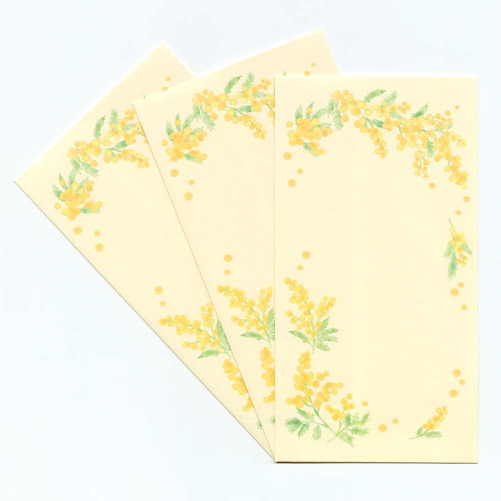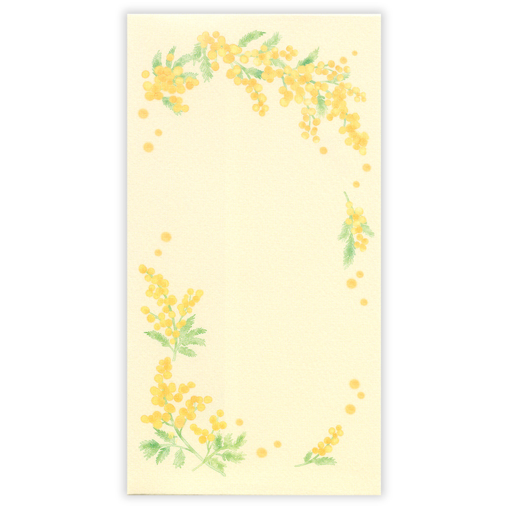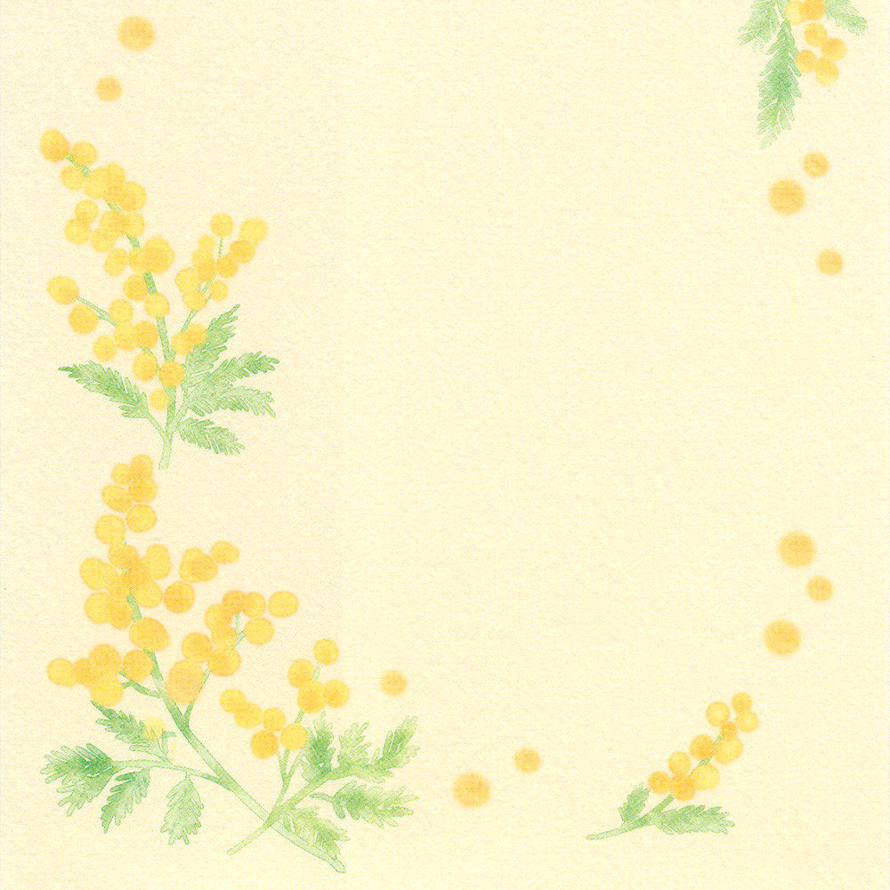 優しい黄色をベースに、咲き誇るミモザを淡いタッチで描きました。