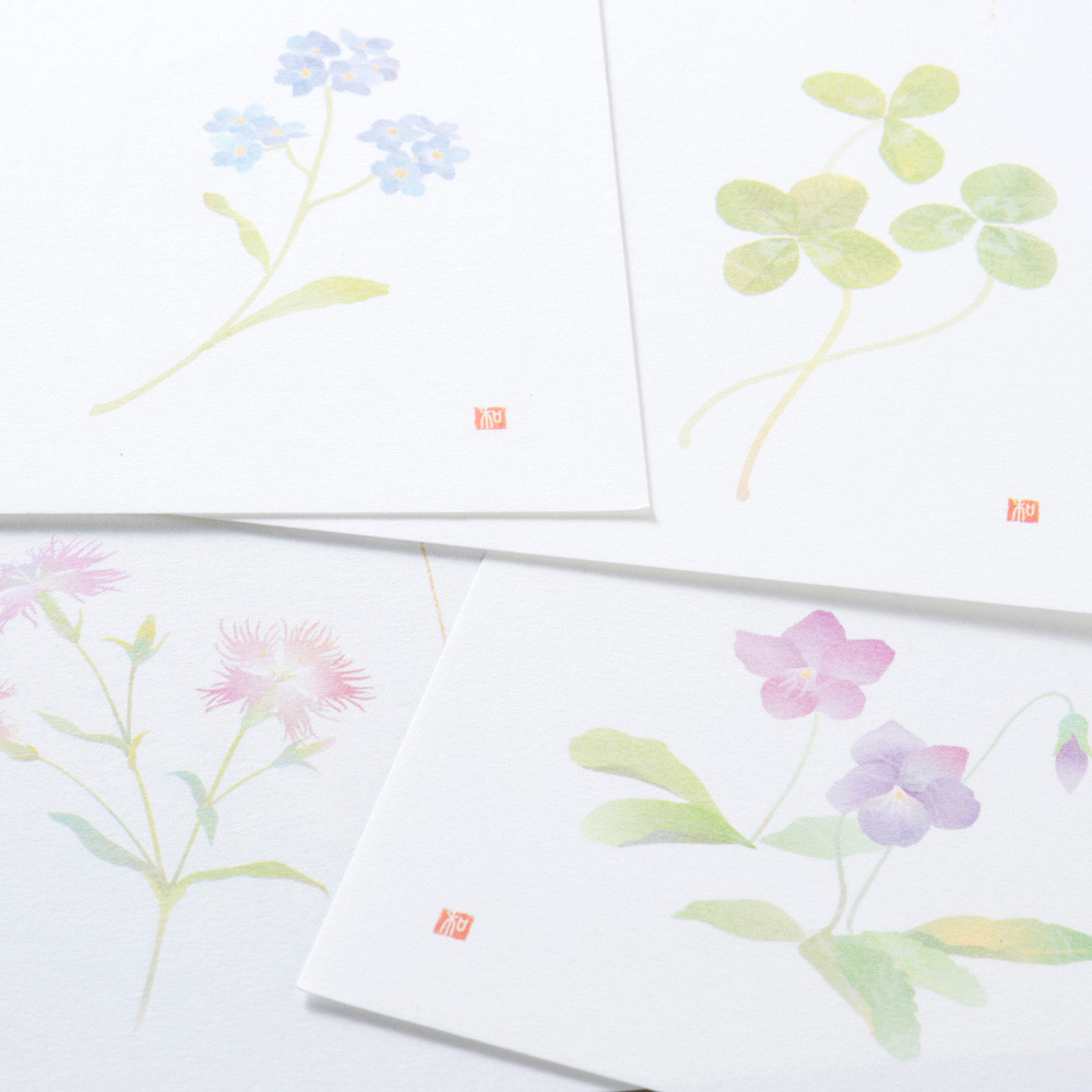 野の花のイラストが入った、4柄アソートの便箋です。