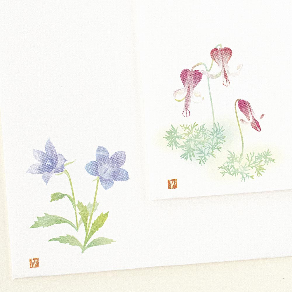 山に咲く花のイラストが入った、2柄アソートの封筒です。