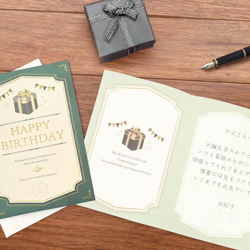 ヴィンテージワインのラベルのようなデザインに仕上げた、大人の方にお勧めのバースデーカードです。