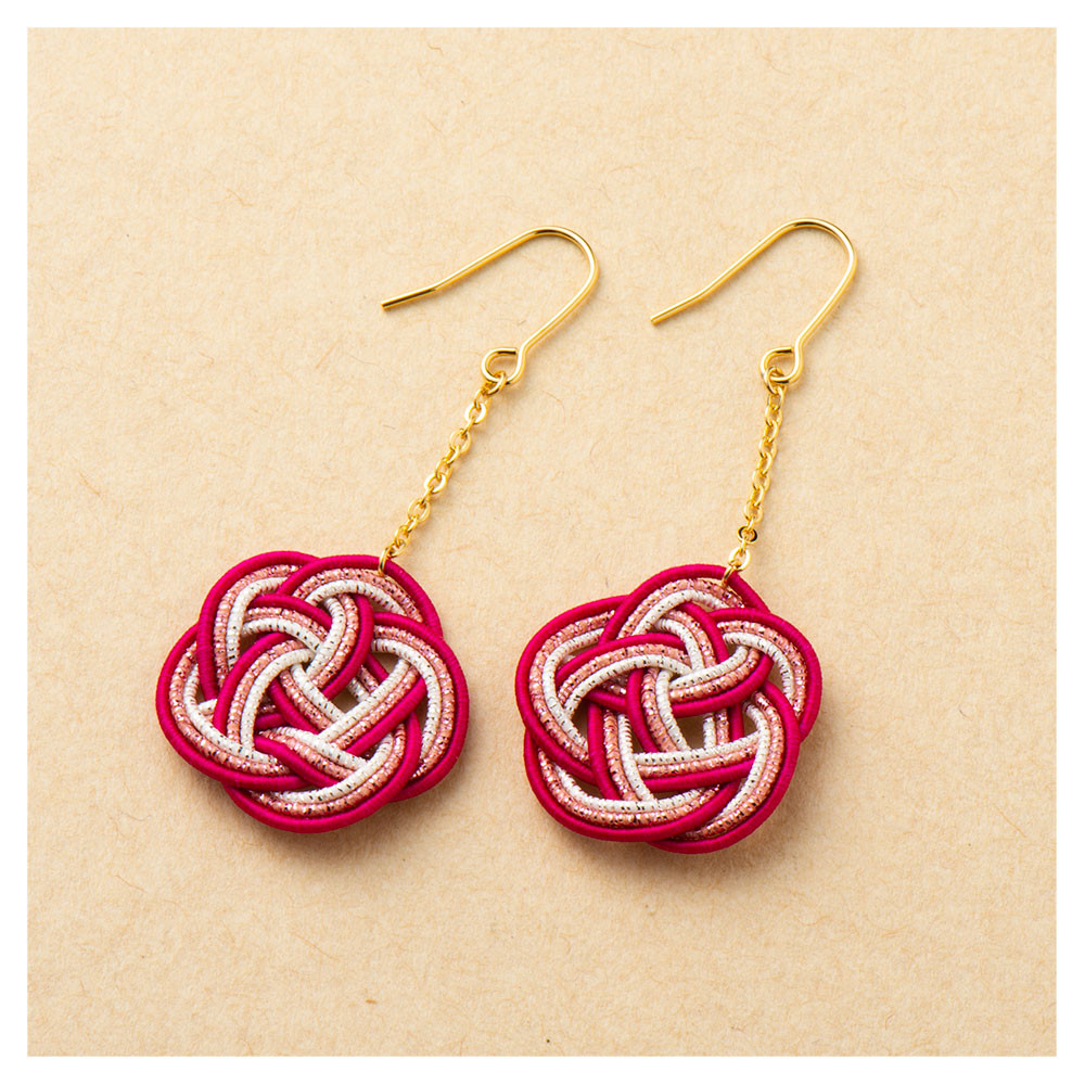 梅結びの水引モチーフのピアスが耳元を彩ります。