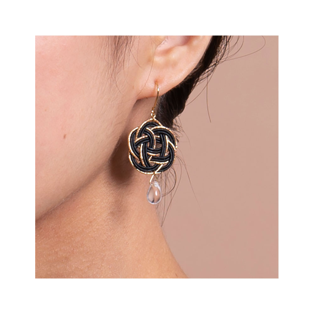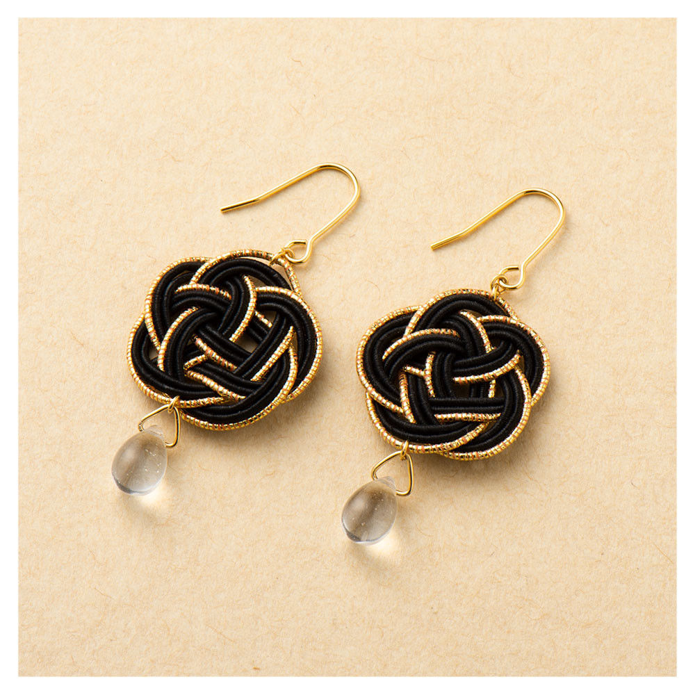 梅結びの水引モチーフのピアスが耳元を彩ります。
