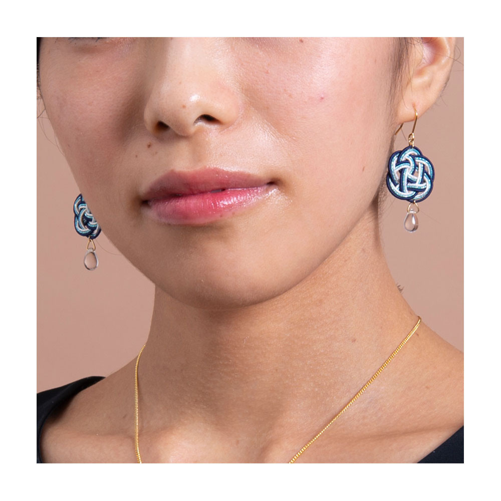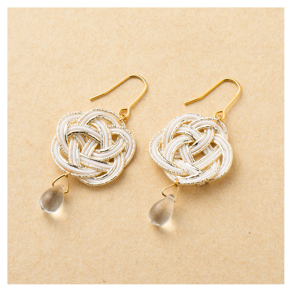 梅結びの水引モチーフのピアスが耳元を彩ります。