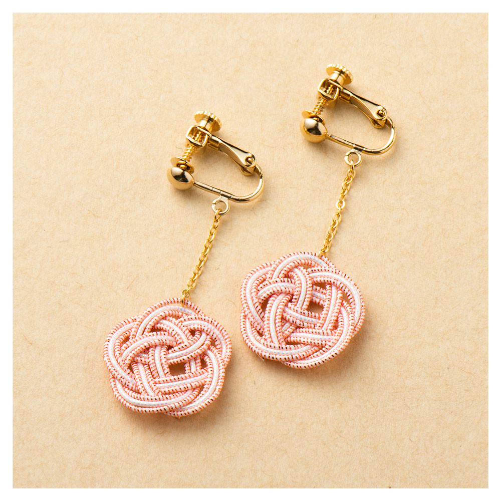 梅結びの水引モチーフのイヤリングが耳元を彩ります。