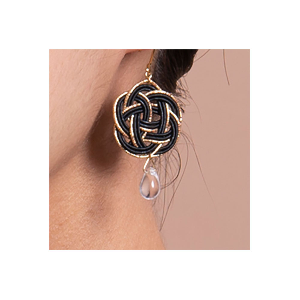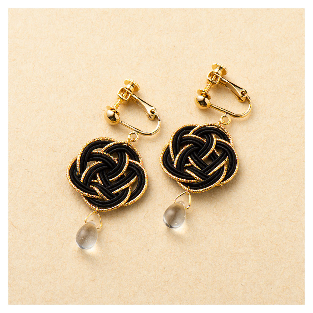 梅結びの水引モチーフのイヤリングが耳元を彩ります。