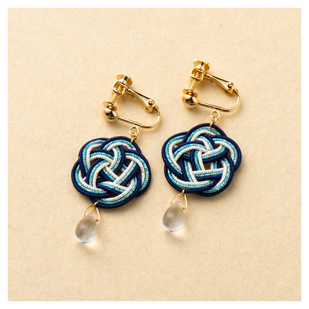 梅結びの水引モチーフのイヤリングが耳元を彩ります。