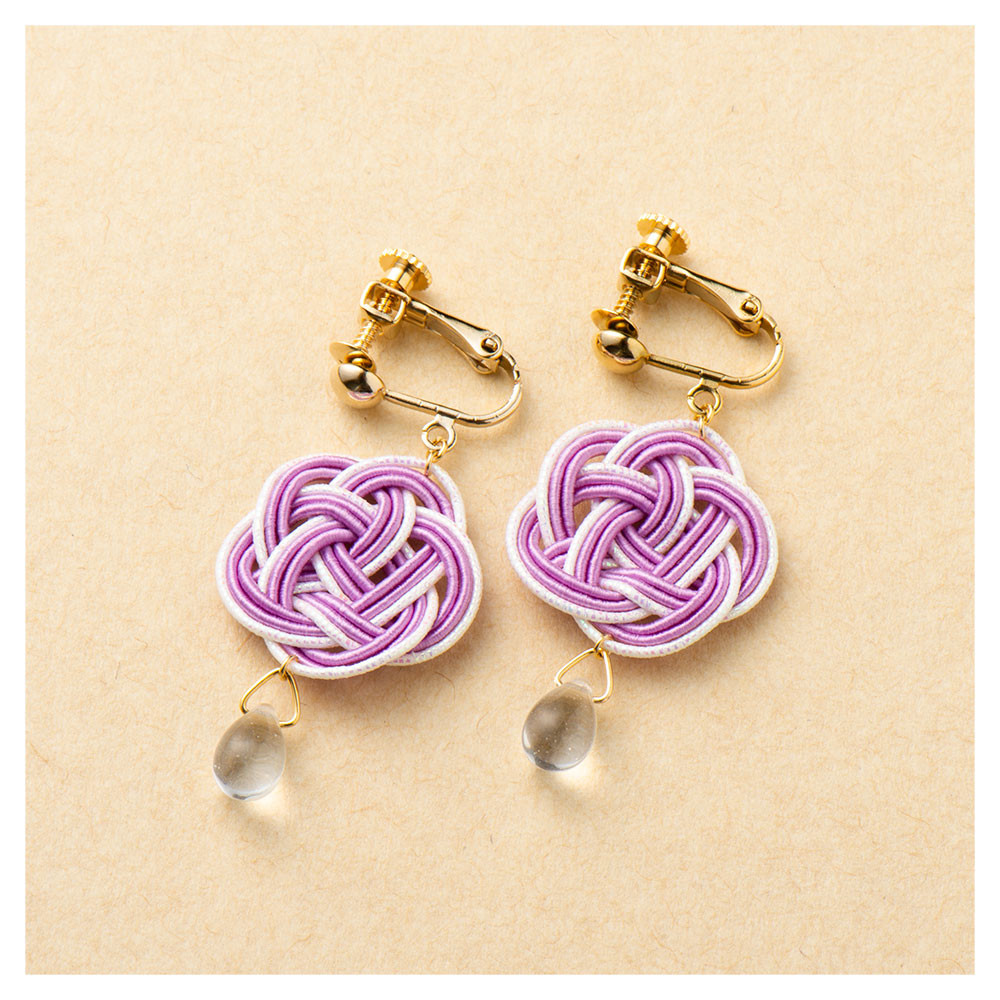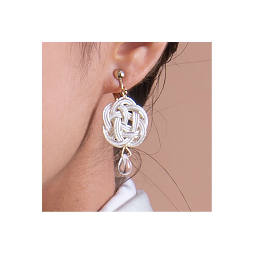 梅結びの水引モチーフのイヤリングが耳元を彩ります。