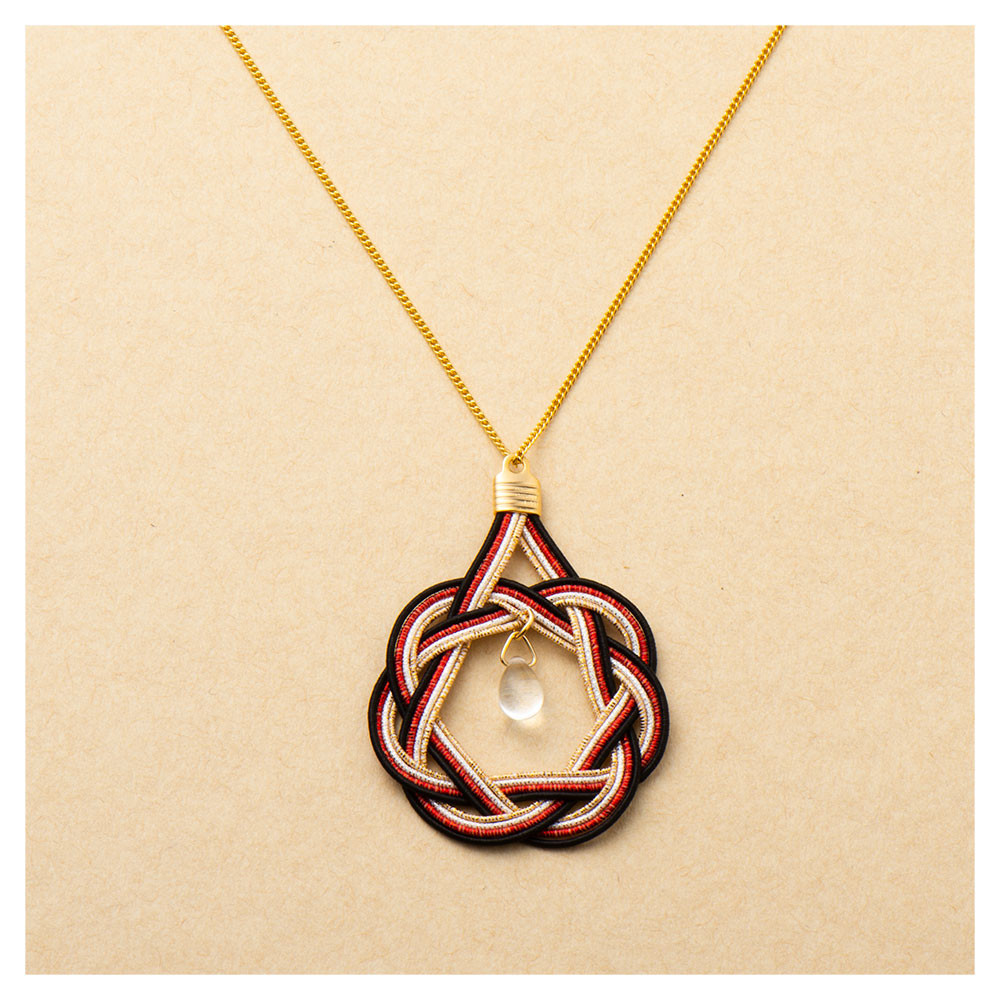 相生結びの水引モチーフのネックレスが高級感を演出します。