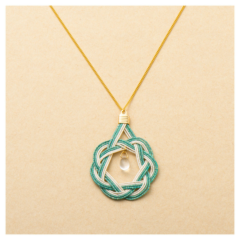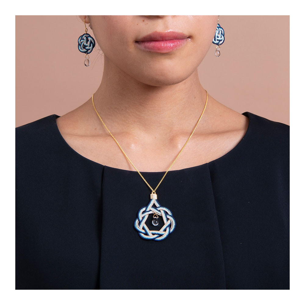 相生結びの水引モチーフのネックレスが高級感を演出します。