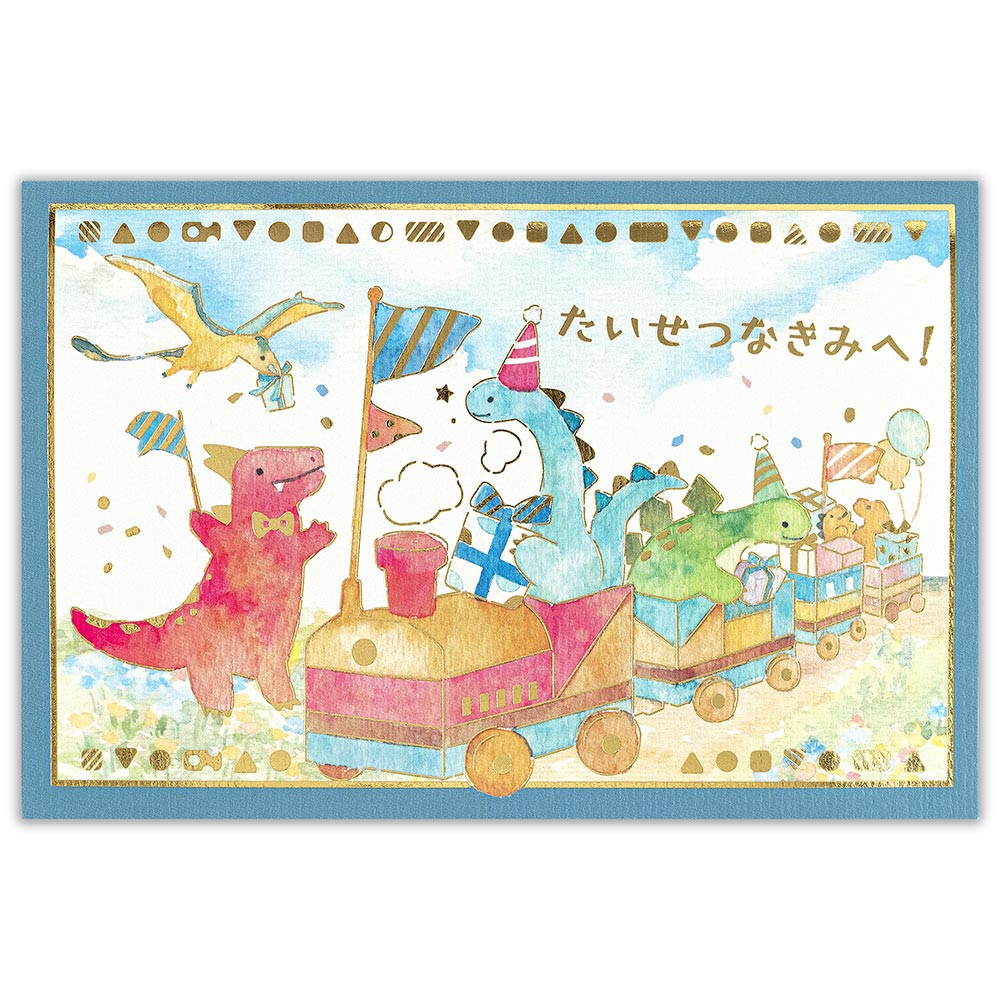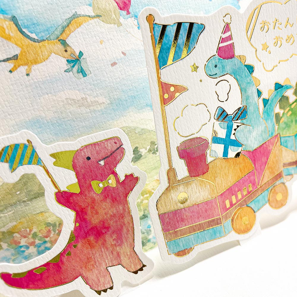 立体パーツが楽しいバースデーカードです。金箔押し加工がきらりと輝きます。