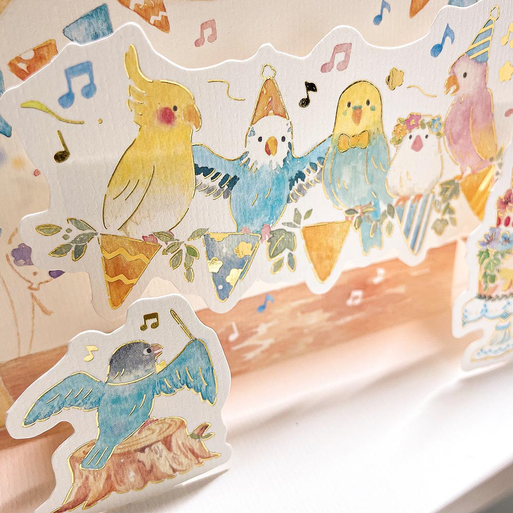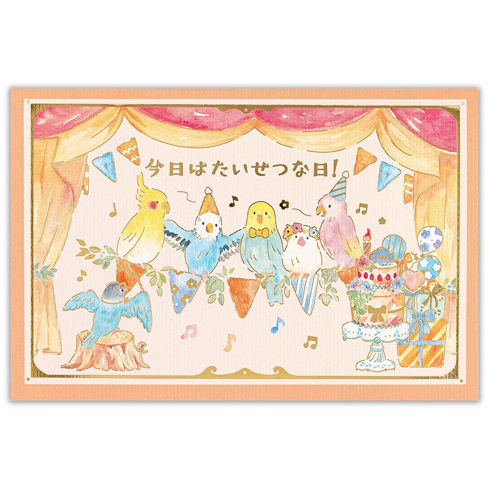 立体パーツが楽しいバースデーカードです。金箔押し加工がきらりと輝きます。