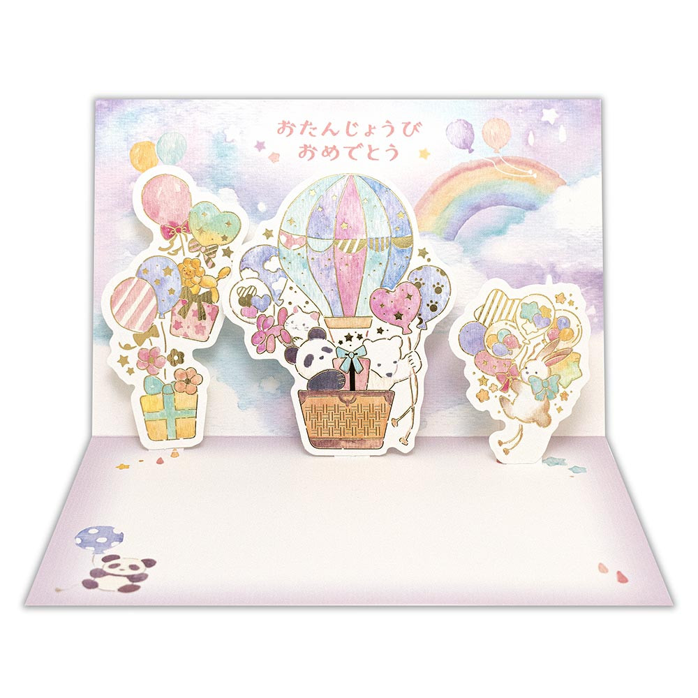 立体パーツが楽しいバースデーカードです。金箔押し加工がきらりと輝きます。