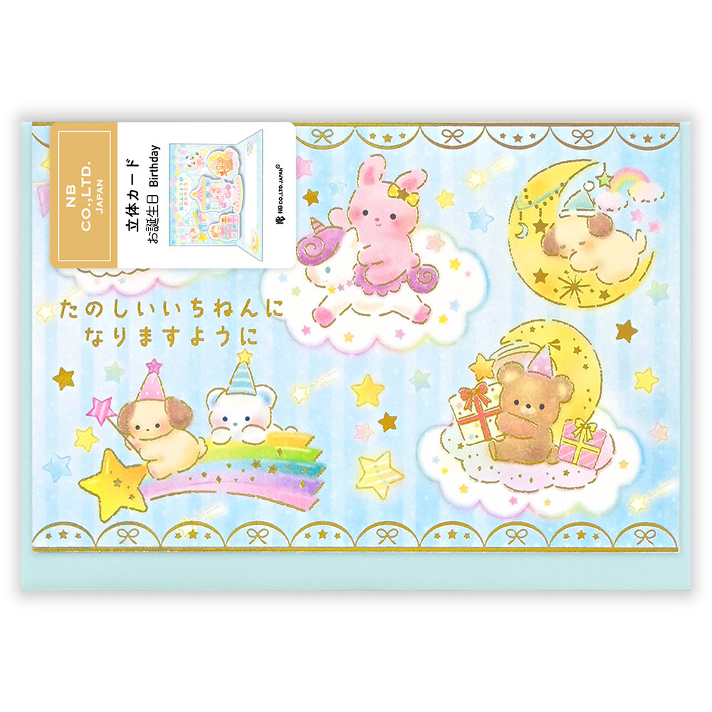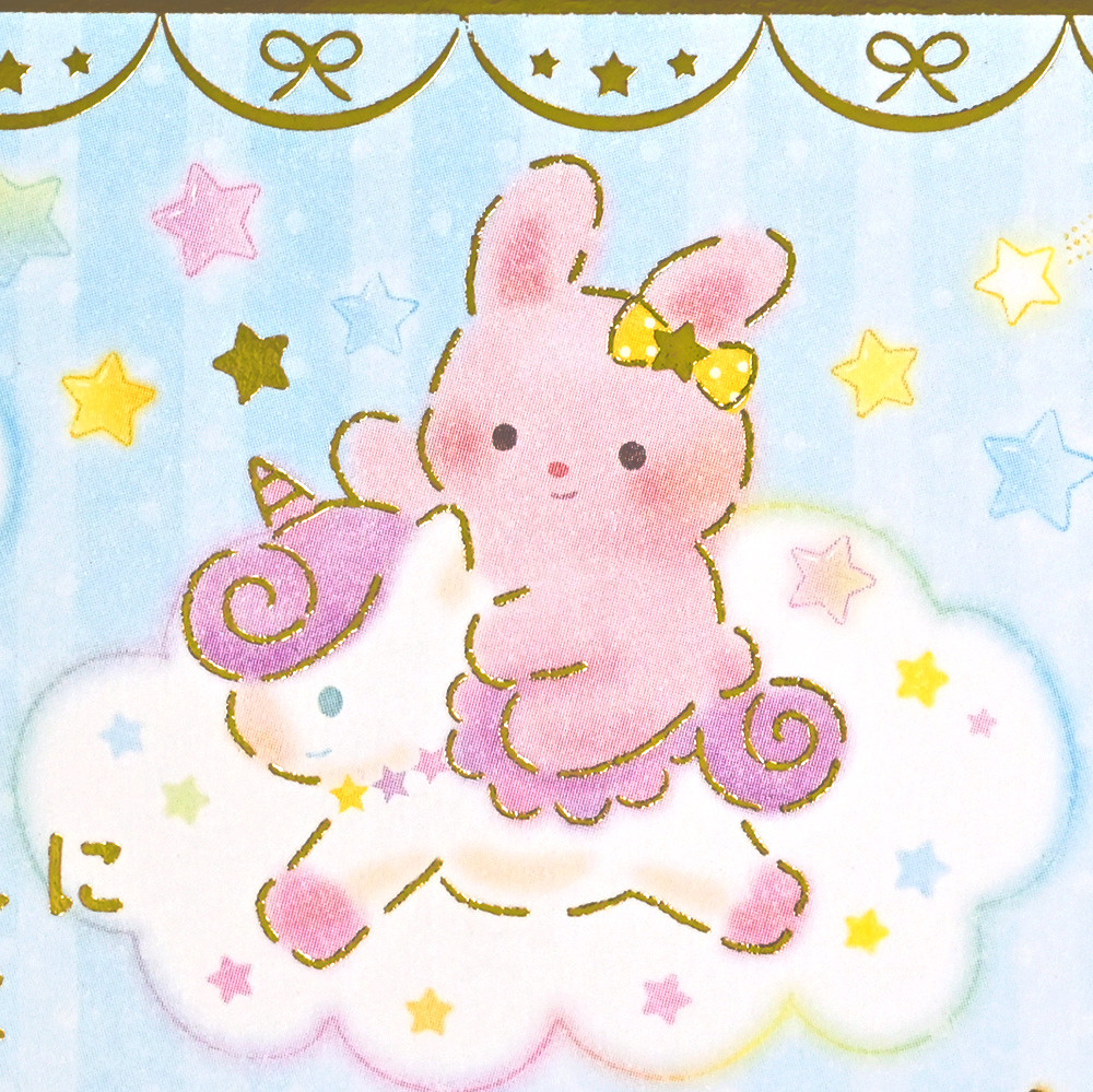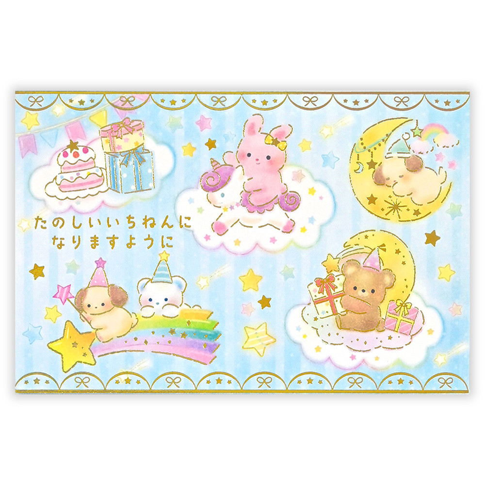 うさぎやくまなどの可愛い動物たちと月や星の、ゆめかわいいデザインです。