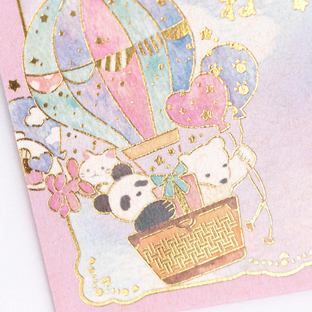 気球や風船、パンダ、猫、シロクマ、うさぎが描かれたゆめかわいいデザインです。