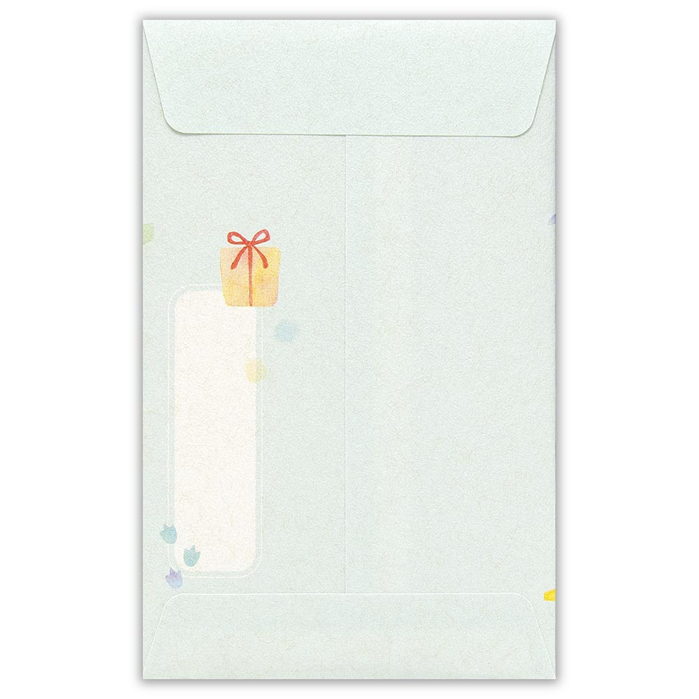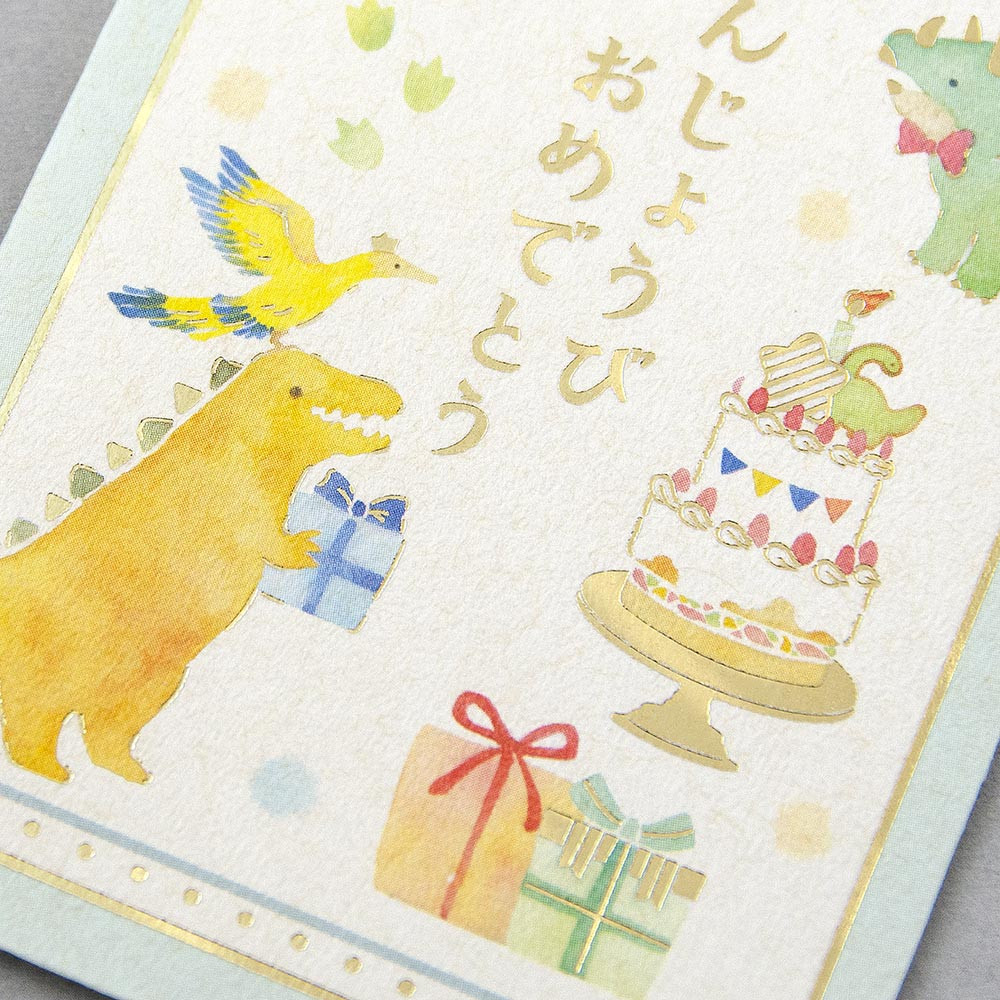 ティラノサウルス・トリケラトプスなど可愛い恐竜たちが描かれた、気軽に贈れる誕生日祝のぽち袋です。