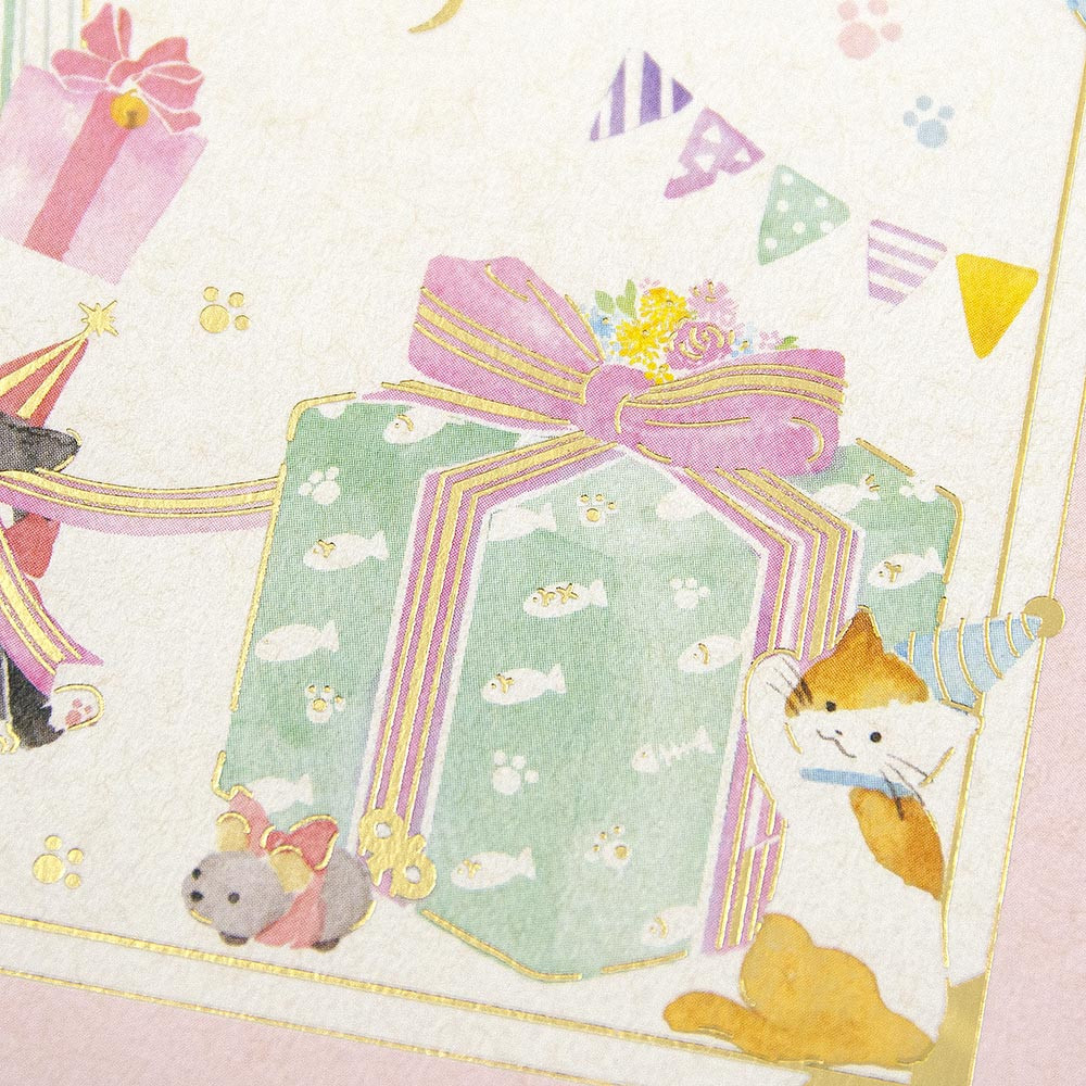 可愛らしい猫たちが描かれた、気軽に贈れる誕生日祝のし袋です。