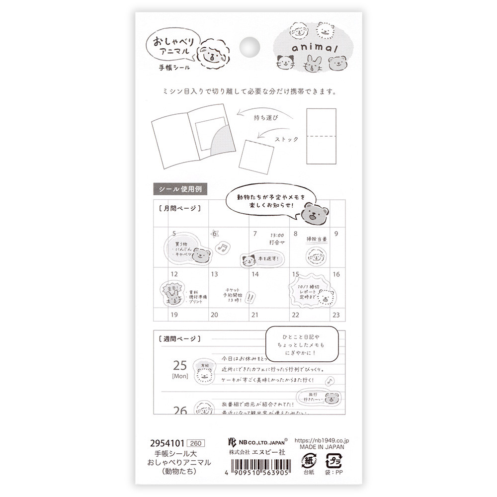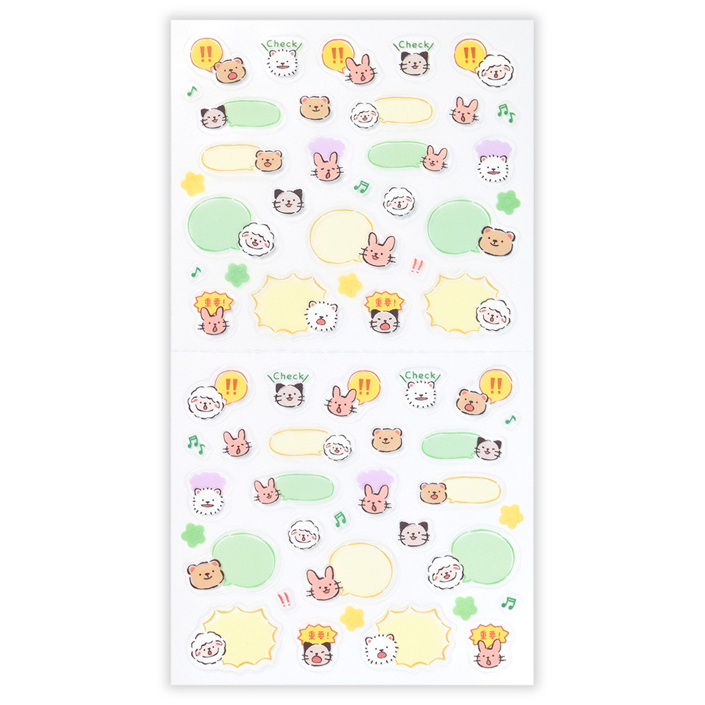 うさぎ、ひつじ、くまなどの動物が予定やメモについておしゃべりしているデザインです。