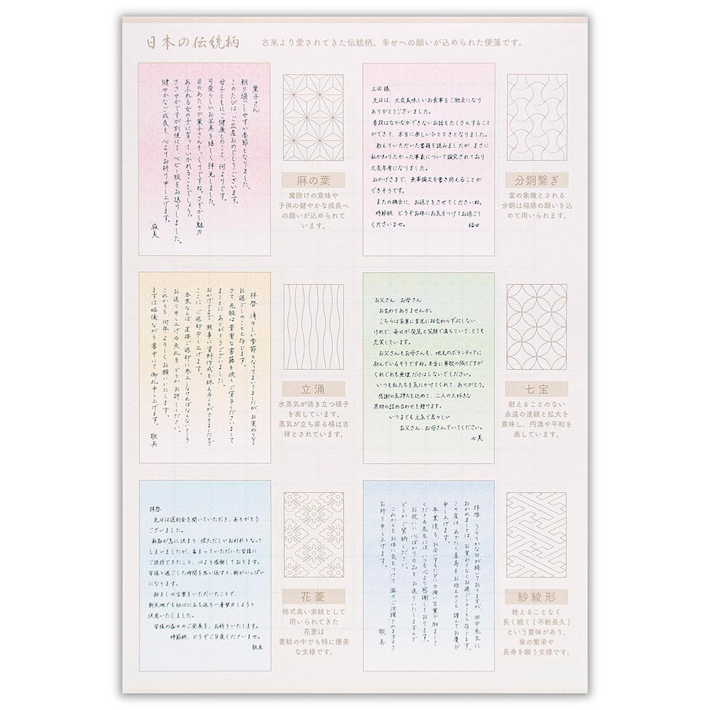 6柄アソート、ボリュームタイプの和紙便箋。使用イメージが伝わりやすい文例付です。