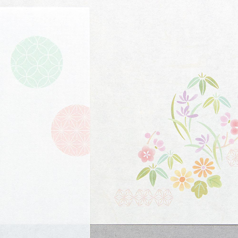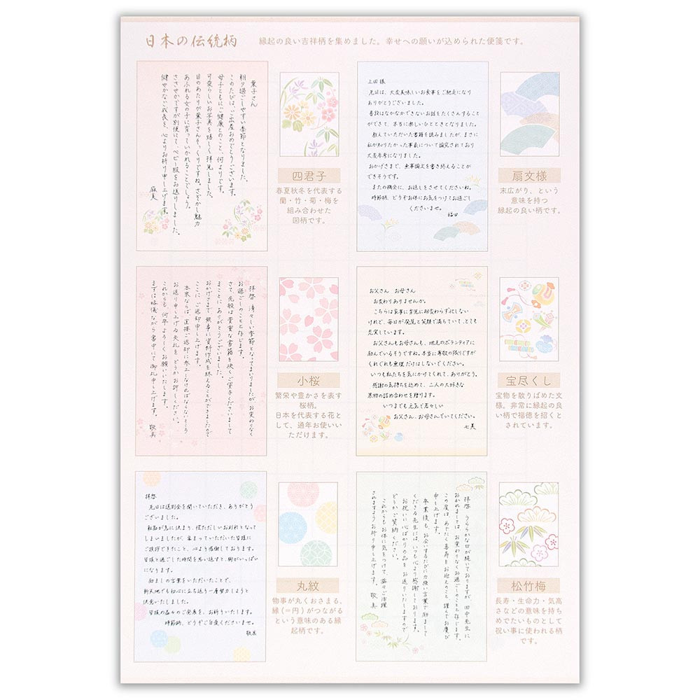 6柄アソート、ボリュームタイプの和紙便箋。使用イメージが伝わりやすい文例付です。