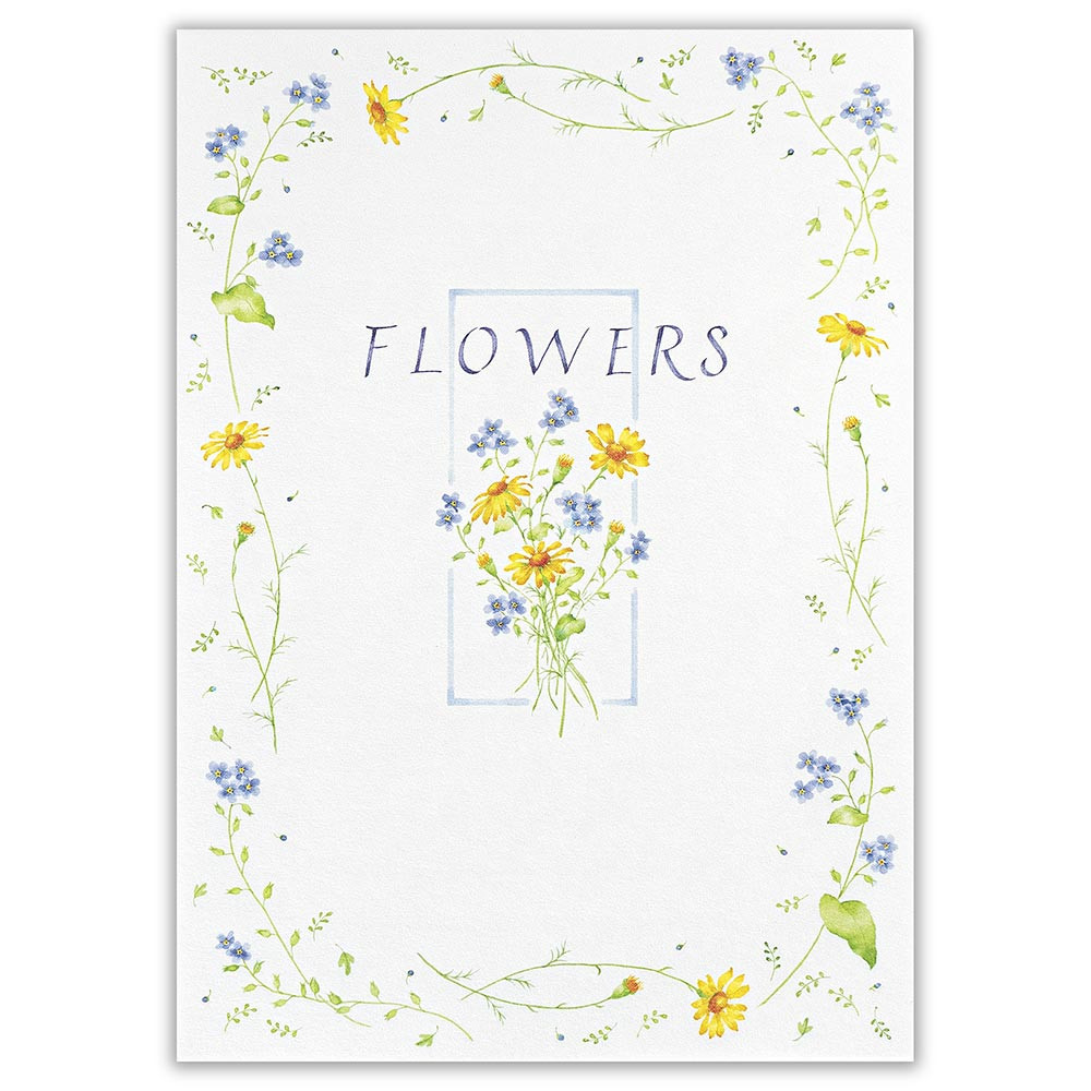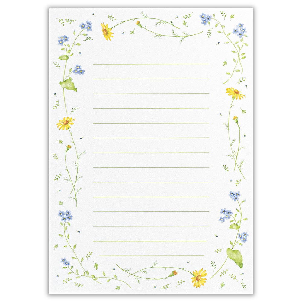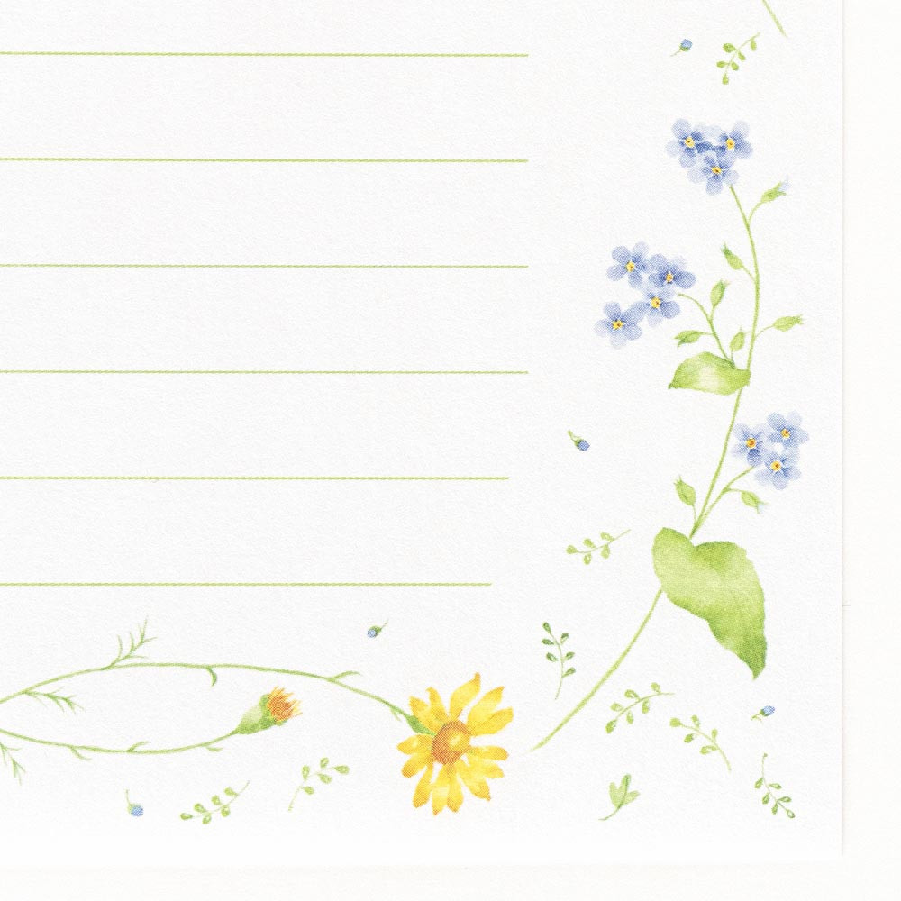 可愛らしい草花のイラストに囲まれた便箋です。 ナチュラルな小花柄が優しく文章を囲みます。