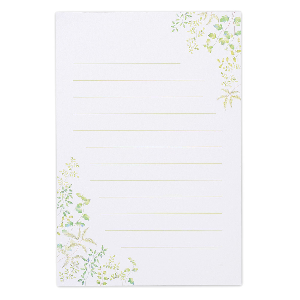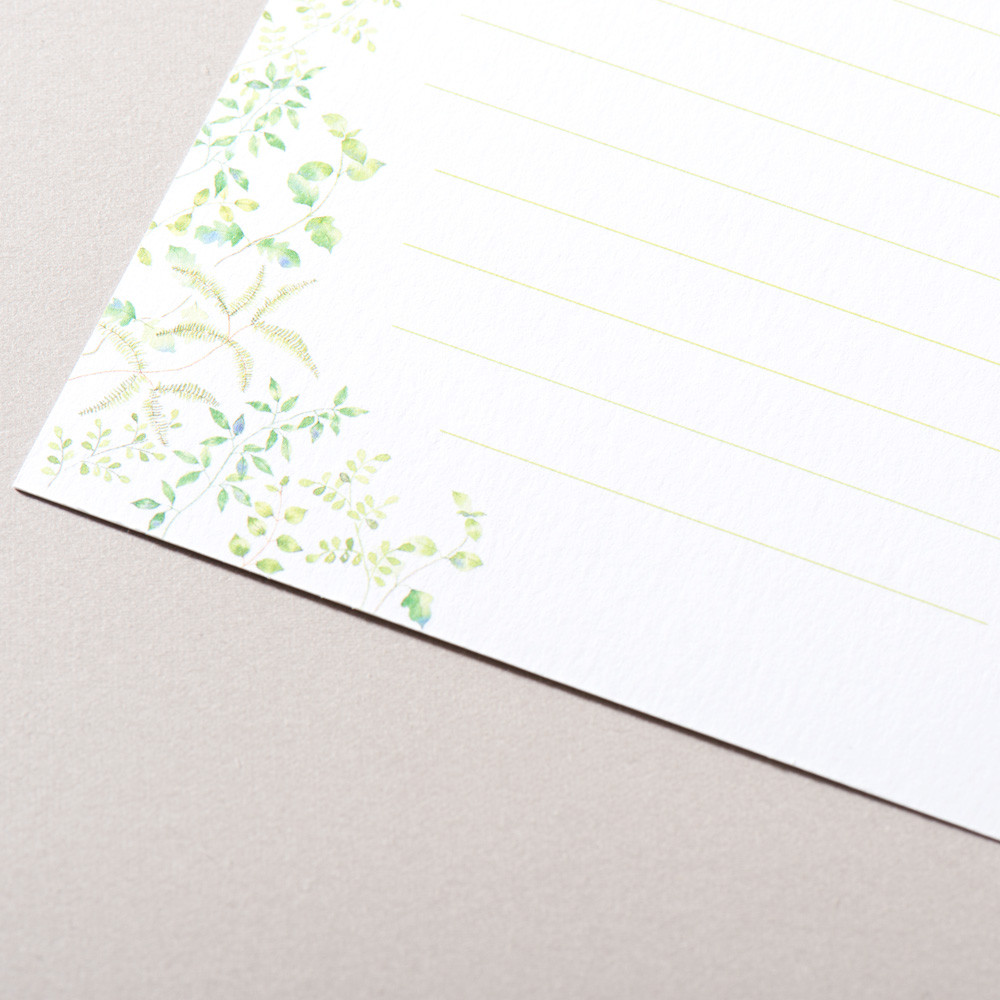 郵便番号枠入りのはがきの裏面に、爽やかなグリーンが描かれたはがき箋です。