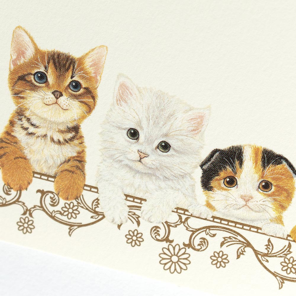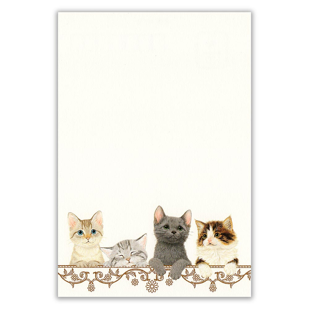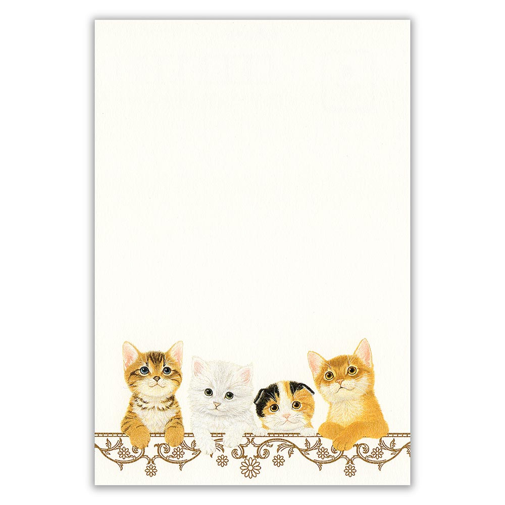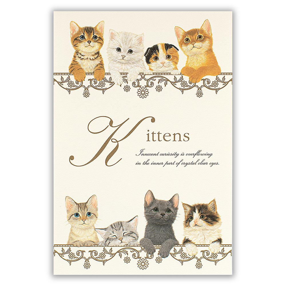 郵便番号枠入りのはがきの裏面に、可愛い子猫のイラストが入ったはがき箋です。