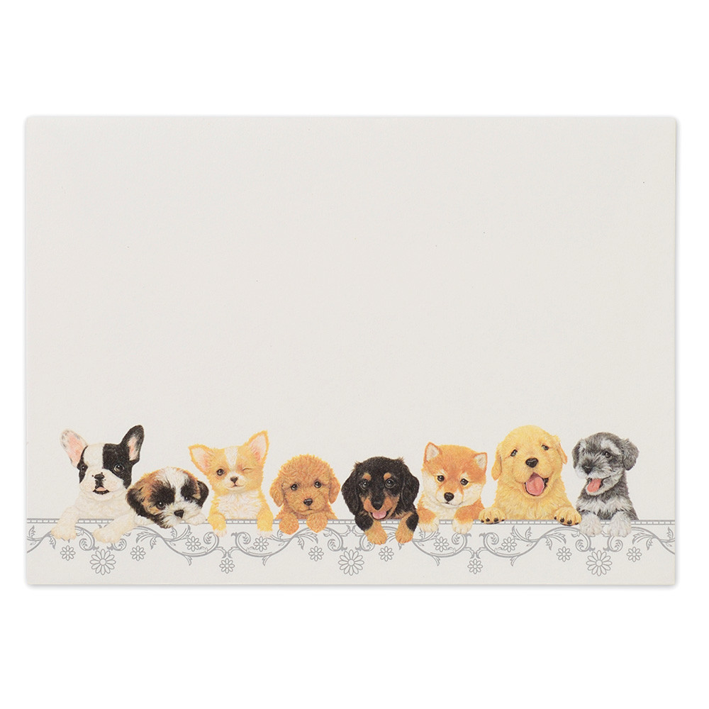 可愛い八匹の子犬のイラストが入った封筒です。 愛らしい表情の子犬たちが仲良く並んでいます。 【動物】
