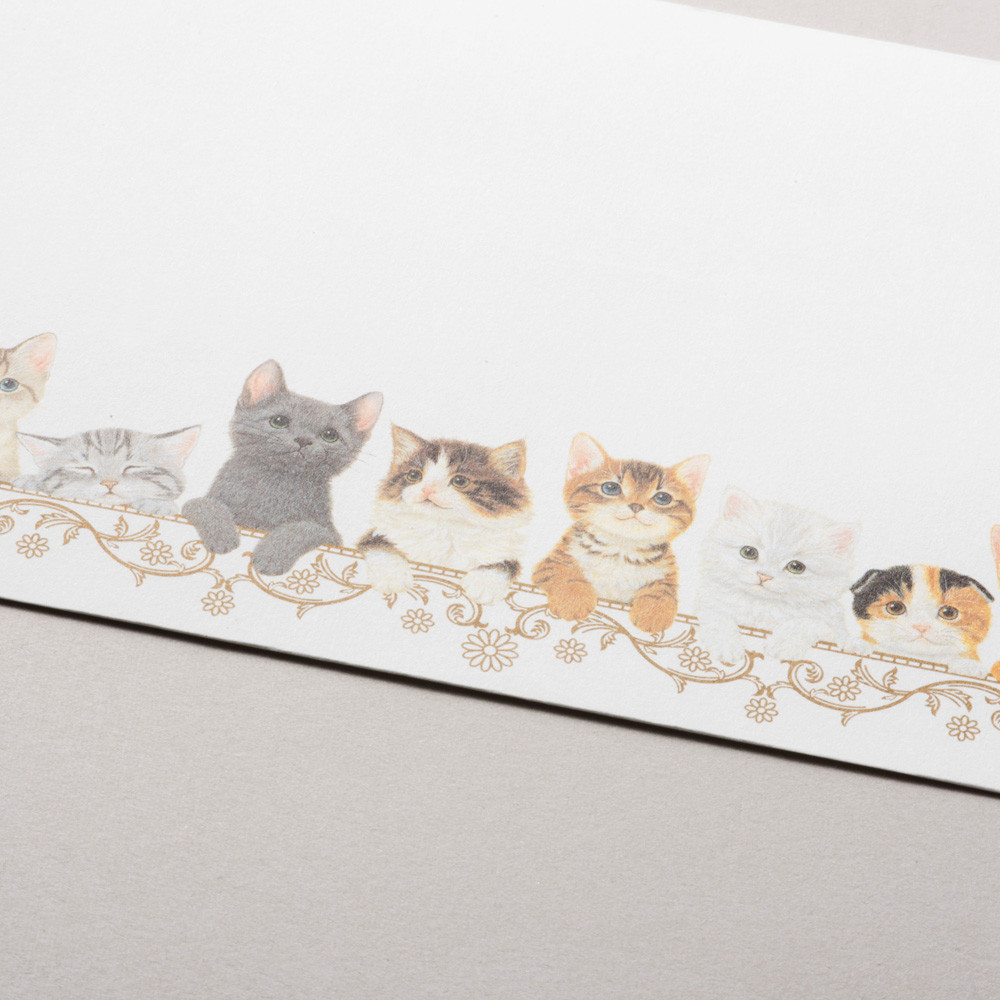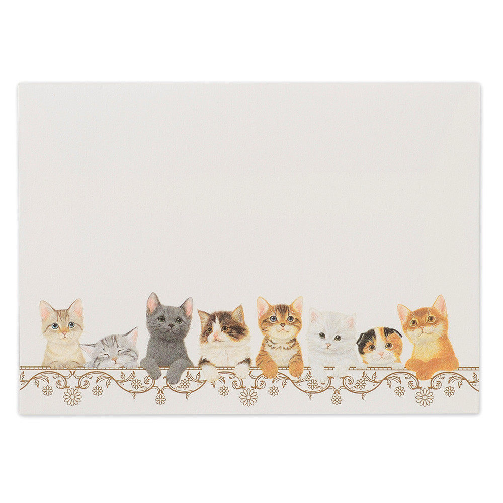 可愛い八匹の子猫たちのイラストが入った封筒です。 愛らしい表情の子猫たちが仲良く並んでいます。 【動物】