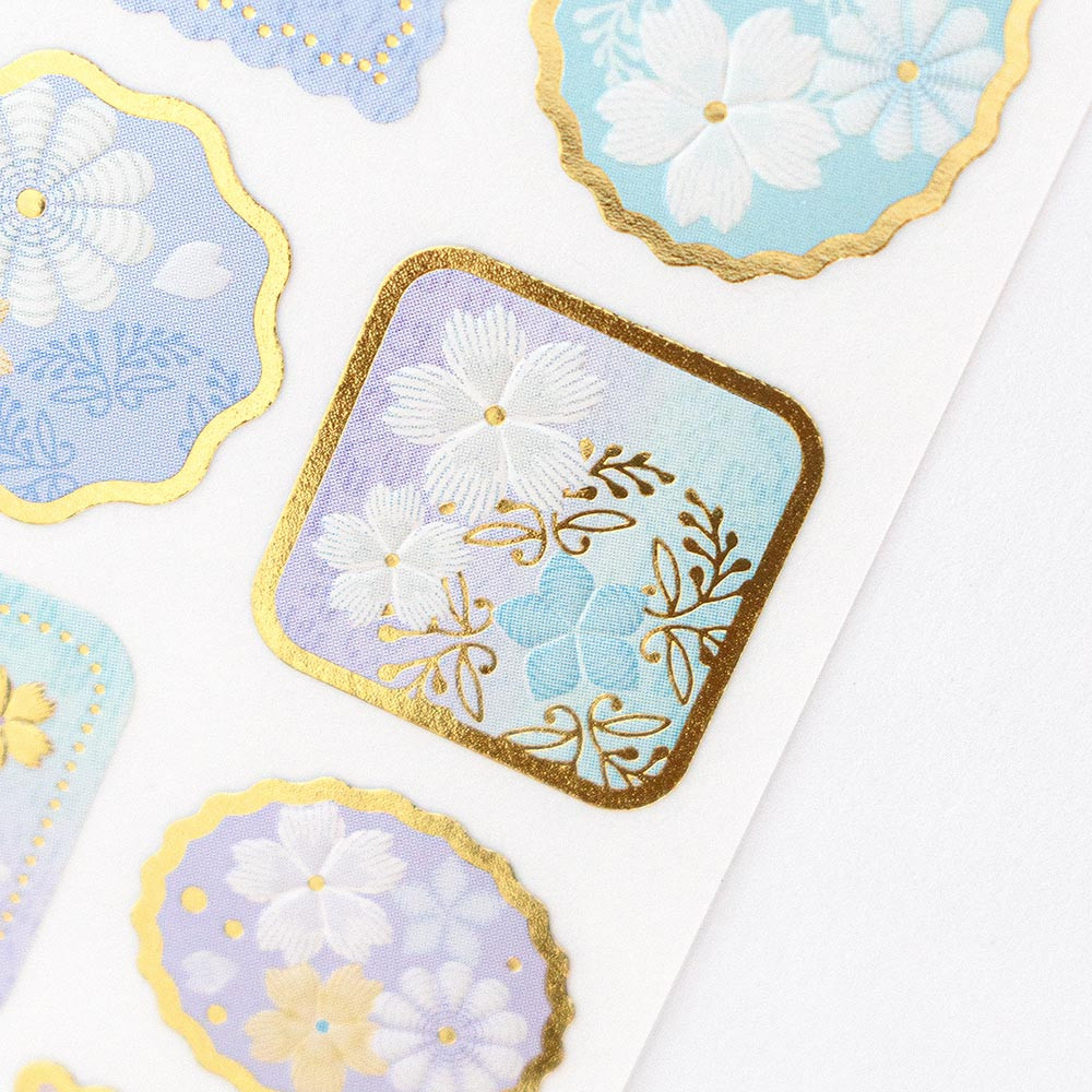 白い小花で模った月のモチーフと金箔押し加工が華やかな封緘シールです。