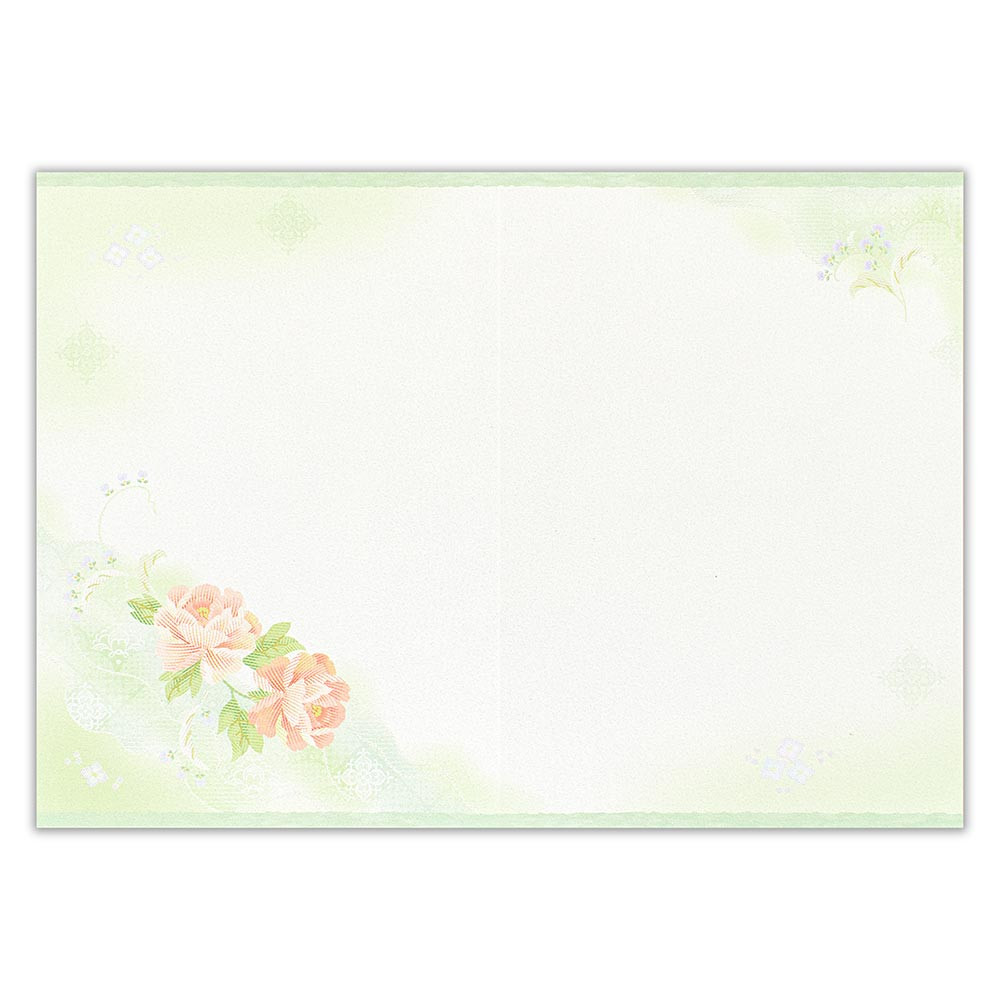 淡い若緑色の霞模様と牡丹の絵柄が爽やかなデザインです。