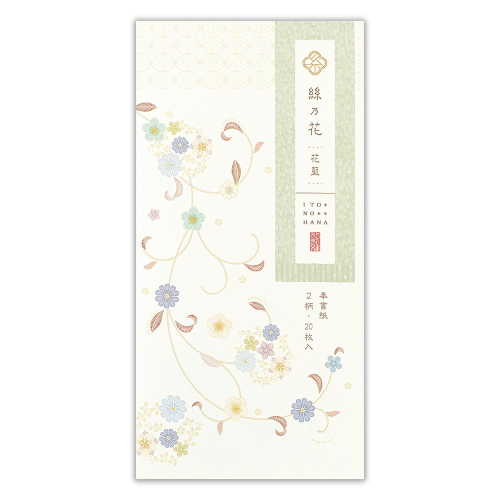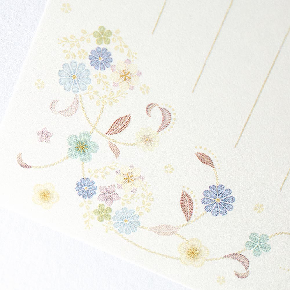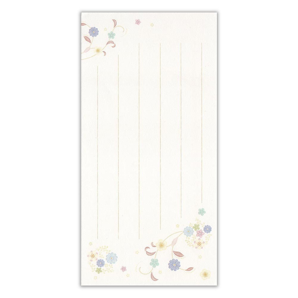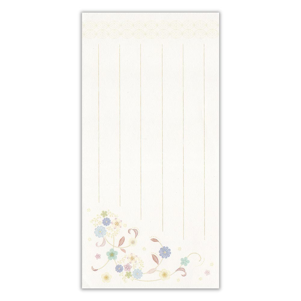 ブルーの蔓花柄が上品な印象の幅広いシーンでお使いいただける一筆箋です。