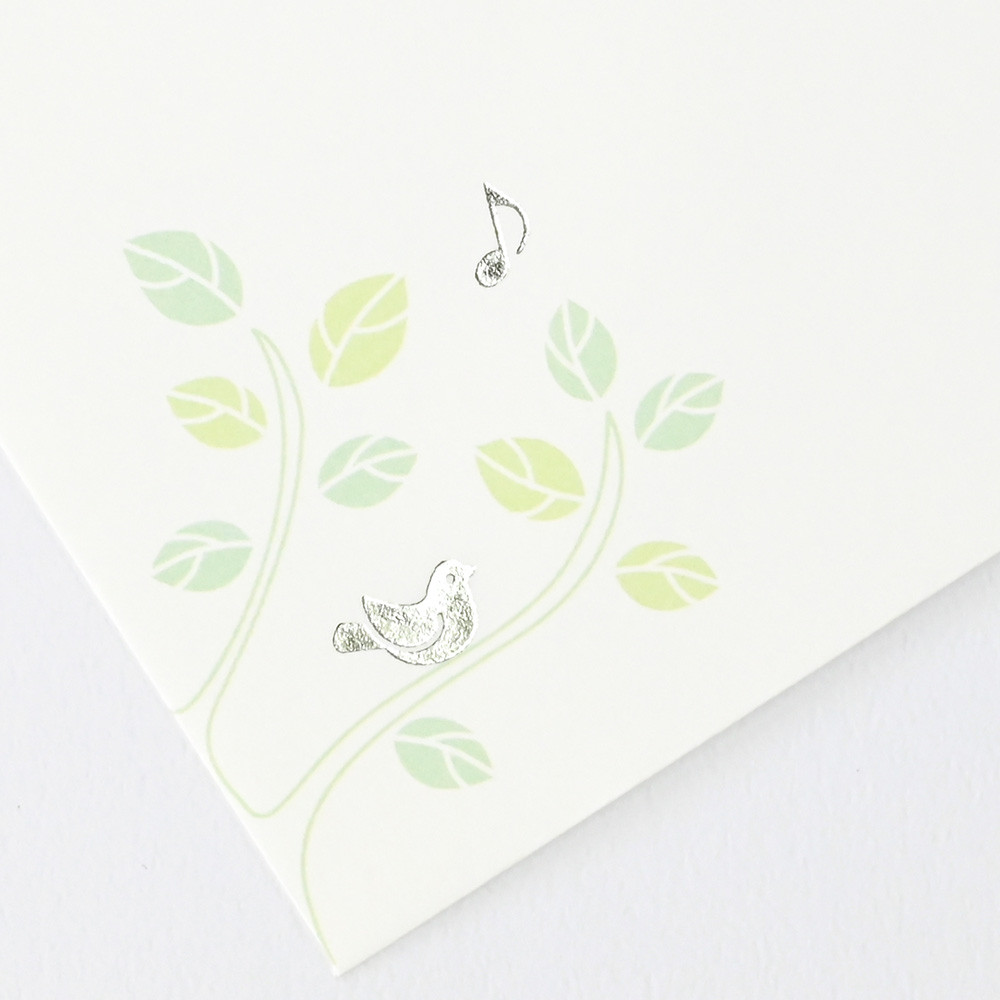 小鳥のさえずりが聞こえてきそうなイラスト入り封筒です。 小鳥のさえずりが爽やかに宛名を引き立てます。