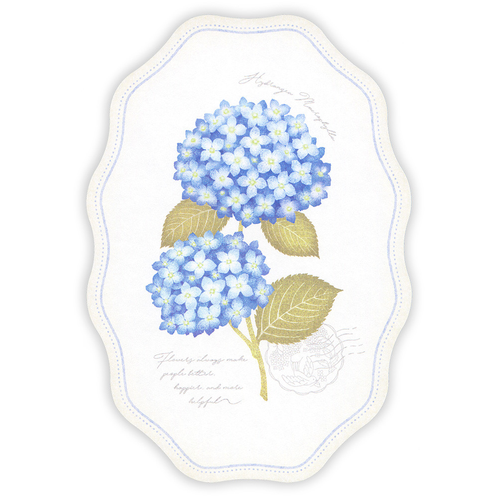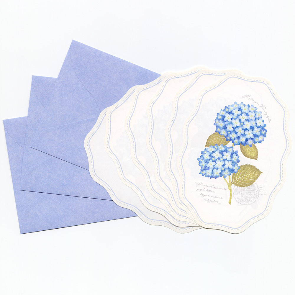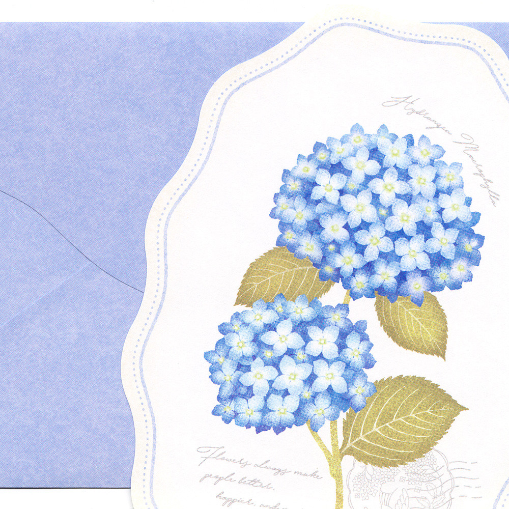 便箋の裏面に青く爽やかな紫陽花が描かれた上品なミニレターです。