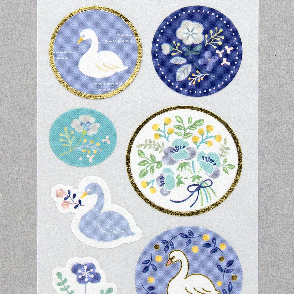 封緘やデコレーションに。 可愛くて使いやすいシールです。 風合いのある紙に金箔押し加工を施しました。 【花】【鳥】
