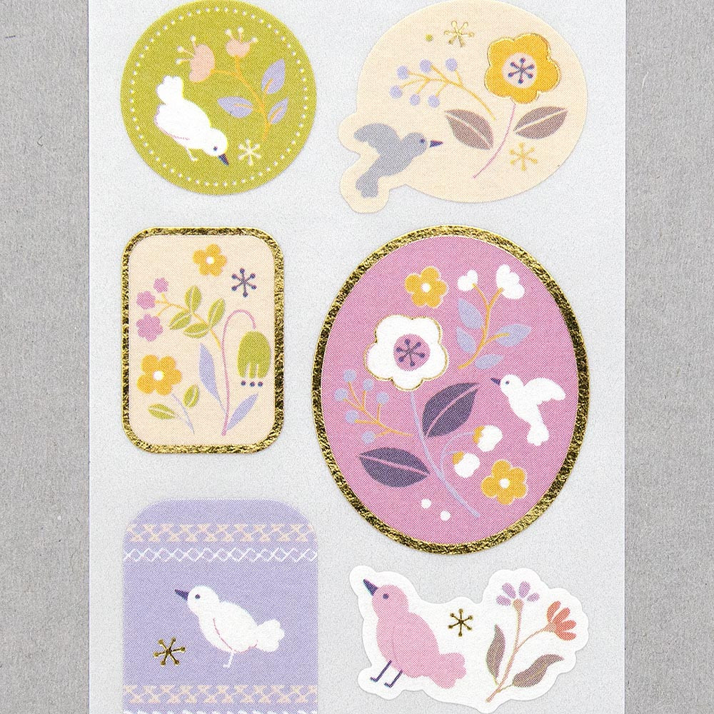 封緘やデコレーションに。 可愛くて使いやすいシールです。 風合いのある紙に金箔押し加工を施しました。 【鳥】【花】