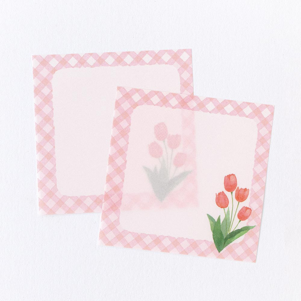 下の文字や図を隠さず上からメモができる透け感のある紙を使用した、淡く優しく透けるふせんです。