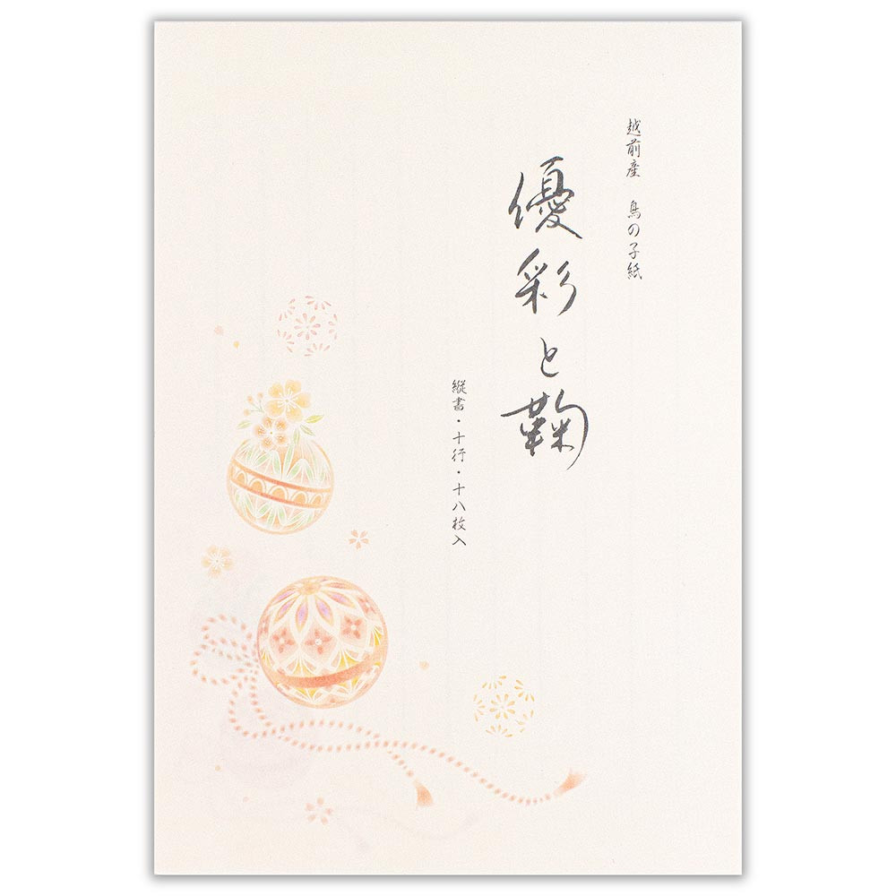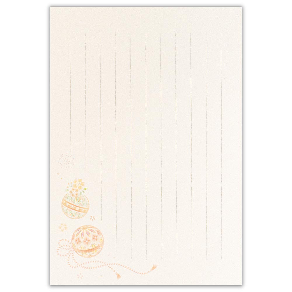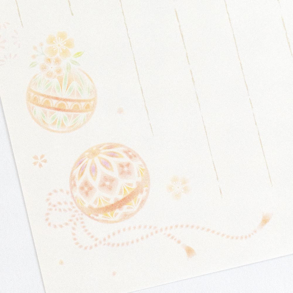 和紙の風合いが心地良い、通年お使いいただける便箋です。 柔らかい和紙の質感と、優しく描かれた鞠が文字をそっと彩ります。