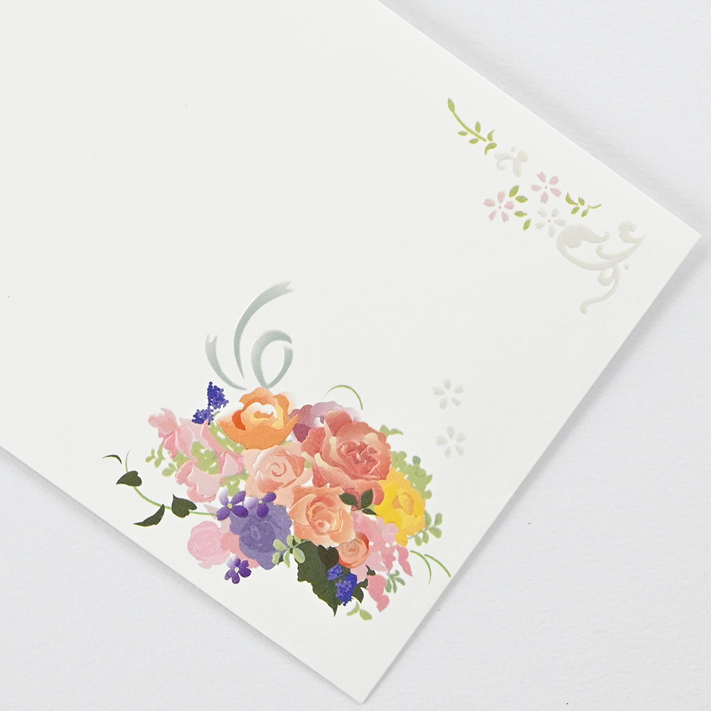 立体感のあるエンボス加工の美しい花々のイラストが入った封筒です。