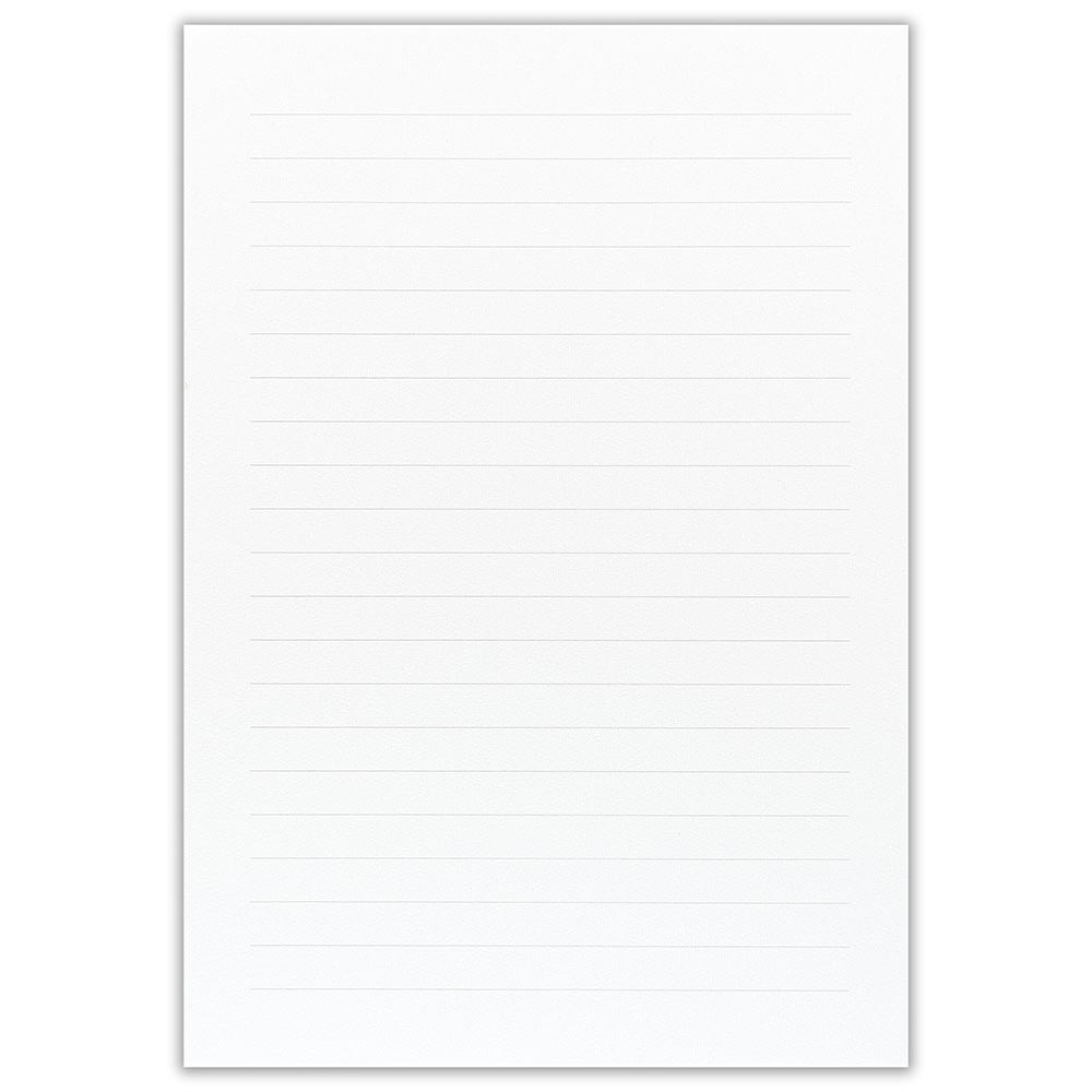 細かな凹凸による独特の質感が印象的な、B5サイズ相当のヨコ20行罫の柄なし便箋です。