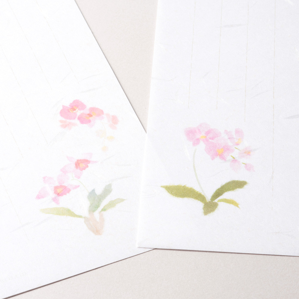 2種の凛々しい蘭の花のイラストをアソートした和紙便箋です。