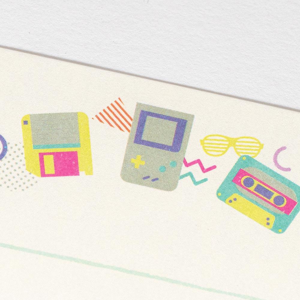 ゆるい絵柄が可愛らしいレトロポップな柄の小たよりです。 伝言メモや贈り物に添えるなど、ご自由にお使いいただける和紙の小さな便りです。