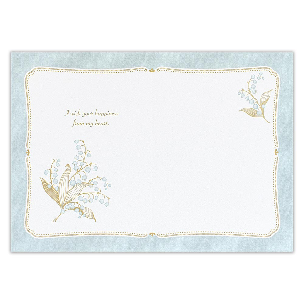 シンプルなスズランの絵柄と縁デザインで上品な印象に仕上げました。