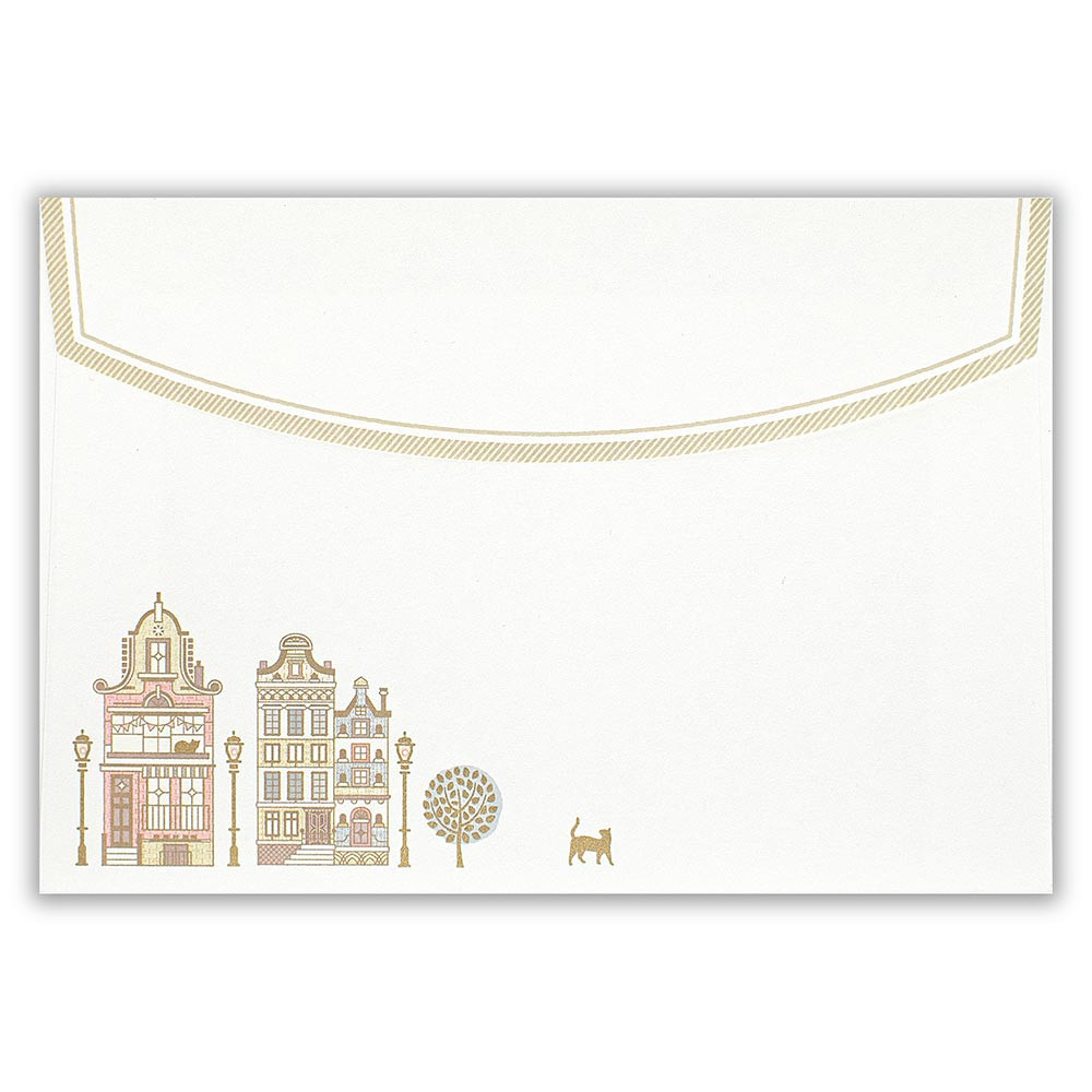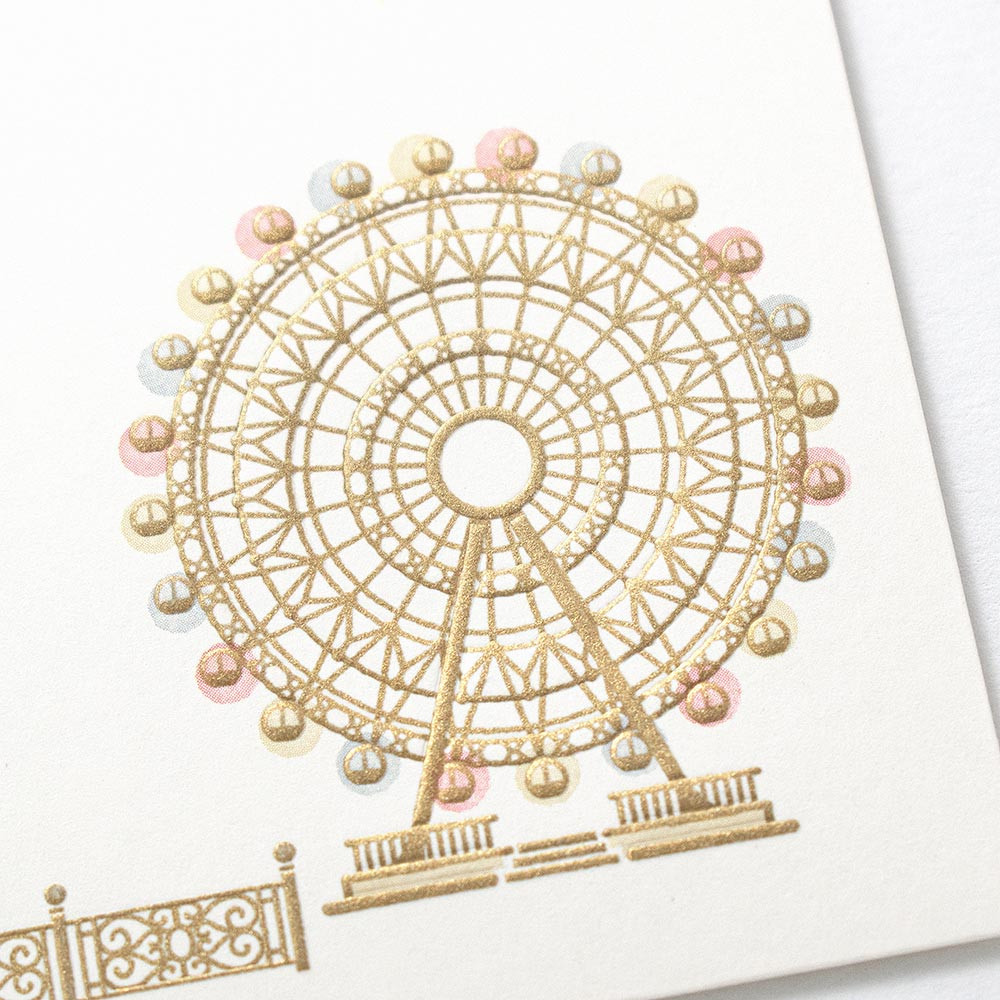 観覧車や欧風の街並みを可愛らしく描き、エンボス加工を施した封筒です。