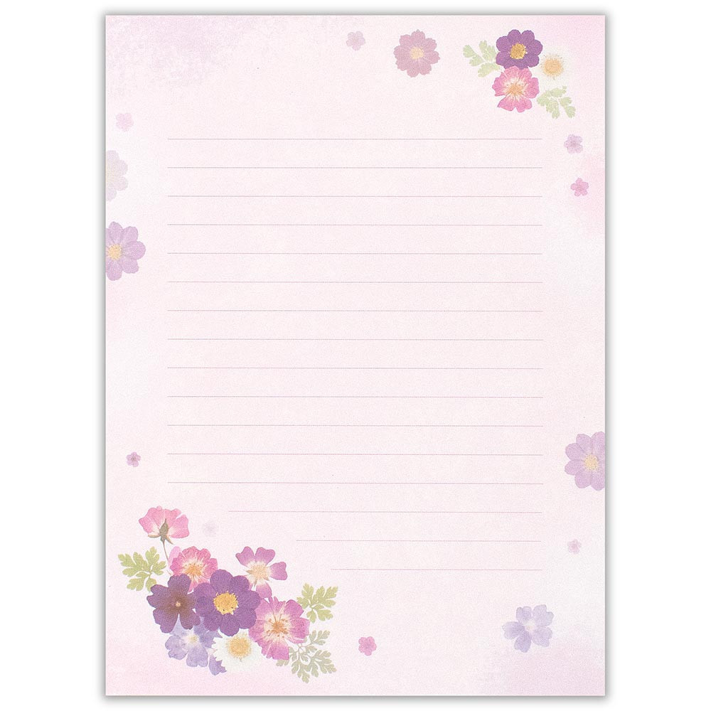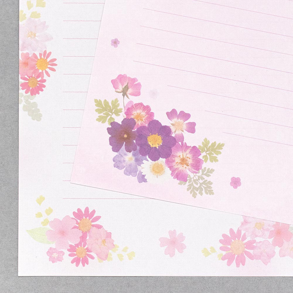通年お使いいただける花柄で、押し花の絵柄がお手紙を彩ります。