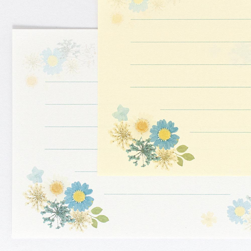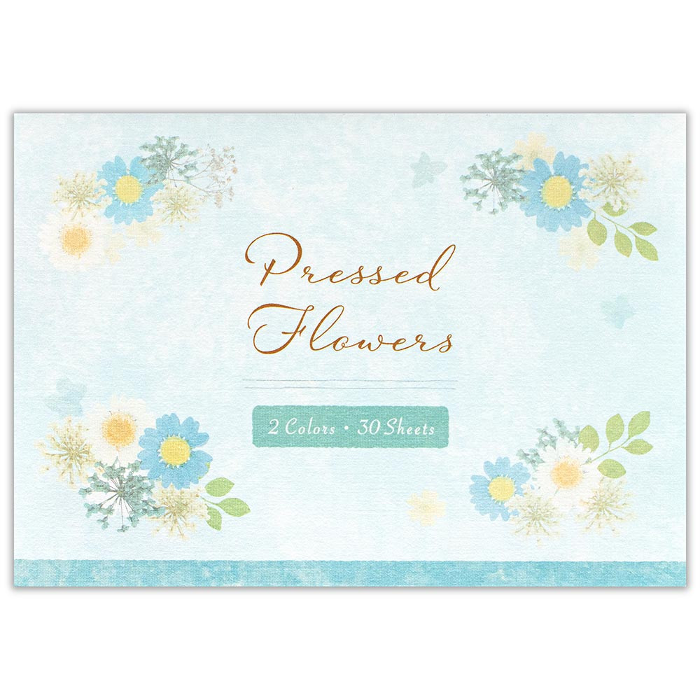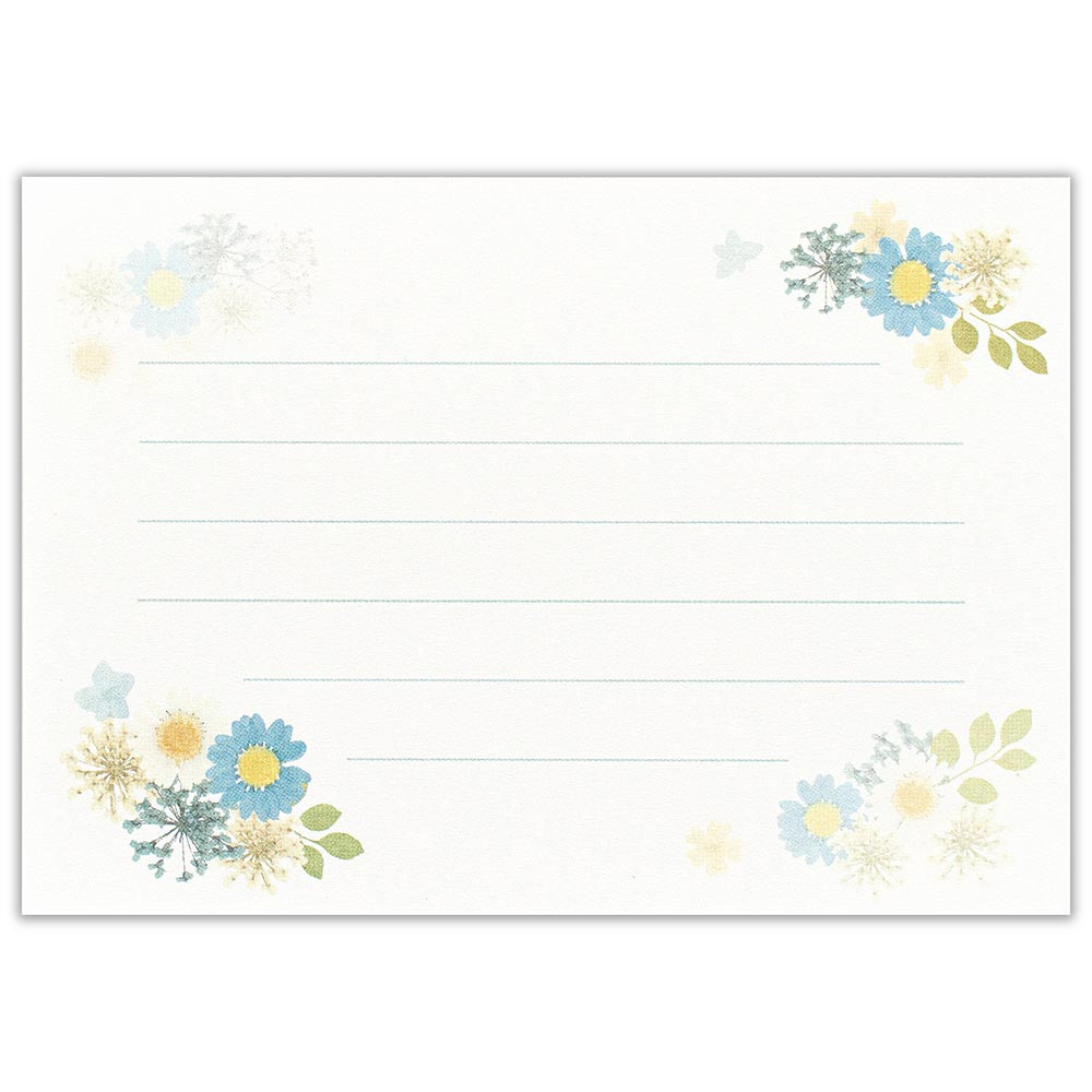 優しいブルーの押し花のデザインです。