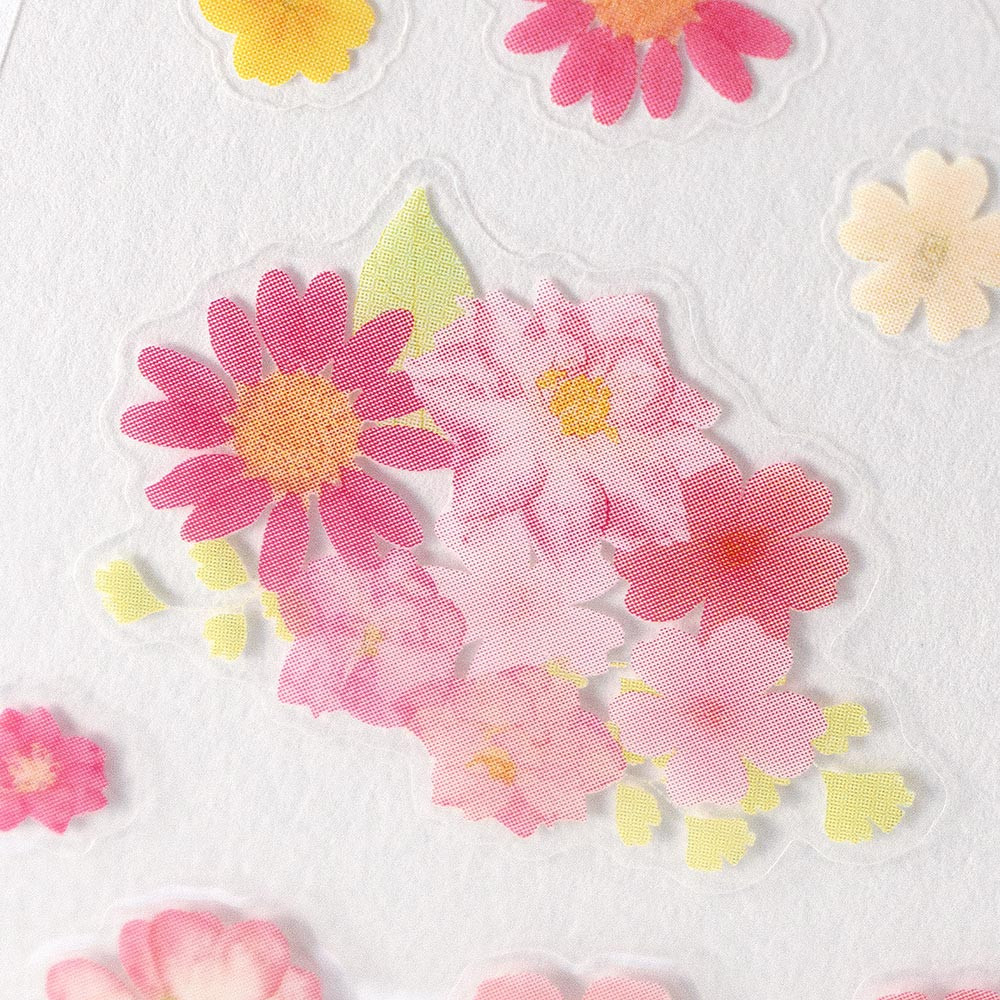 日常のなかでお使いいただける上品な花柄の透明シールです。